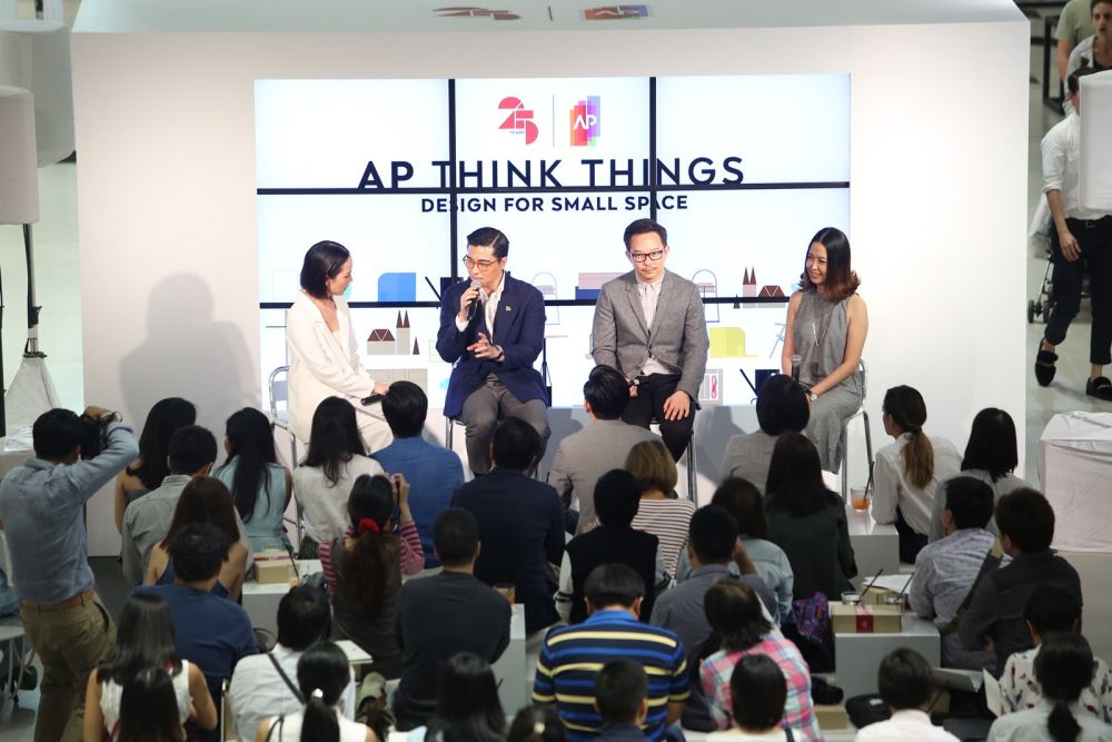 คุณสรรพสิทธิ์ ฟุ้งเฟื่องเชวง ผู้อำนวยการฝ่ายคอร์ปอเรต มาร์เกตติ้ง บริษัท เอพี (ไทยแลนด์) จำกัด (มหาชน) กล่าวว่า “นอกเหนือจากการคิดและสร้างที่อยู่อาศัยคุณภาพมาตลอด 25 ปี เรายังเห็นความสำคัญของการศึกษาพฤติกรรมการอยู่อาศัยของคนเมือง เราใส่ใจในการคิดและสร้างพื้นที่ชีวิตที่มีคุณภาพภายในบ้านเอพีซึ่งปัจจุบันมีอยู่มากกว่า 60 โครงการ เรามุ่งหวังจะค้นหาตำแหน่งความสุข ใส่ใจกับพื้นที่ทุกตารางนิ้ว ซึ่งบางเรื่องและบางพื้นที่อาจถูกมองข้าม หรือไม่มีใครคิดถึง ‘AP THINK THINGS’ จึงเป็นการออกแบบที่ผนวกฟังก์ชั่นใหม่ที่ไม่เคยมีมาก่อน เข้ากับรูปลักษณ์ที่ทันสมัย เพื่อมอบให้แก่ลูกบ้านเอพีและคนเมืองทุกคน”พิธีเปิดนิทรรศการแสดงผลงานการออกแบบผลิตภัณฑ์เครื่องใช้ภายในบ้านรอบเอ็กซ์คลูซีฟ ‘AP THINK THINGS เอพีคิดให้คุณ...อยู่’ โดยมี คุณสรรพสิทธิ์ ฟุ้งเฟื่องเชวง ผู้อำนวยการฝ่ายคอร์ปอเรต มาร์เกตติ้ง บริษัท เอพี (ไทยแลนด์) จำกัด (มหาชน) พร้อมกันนั้นยังได้พูดคุยกับสองนักออกแบบรุ่นใหม่จาก Thinkk Studio คุณพลอยพรรณ ธีรชัย และ คุณเดชา อรรจนานันท์ ในฐานะผู้ร่วมออกแบบผลิตภัณฑ์นวัตกรรมความสุขในบ้านทั้ง 14 ชิ้น อาทิ ชั้นวางของบางเฉียบหลังประตูห้อง ฟองน้ำล้างจานที่ไม่ต้องการที่วาง และเขียงจัดระเบียบ โต๊ะปิงปองเคลื่อนที่ ฯลฯ ร่วมด้วยเหล่าเซเลบริตี้แถวหน้าเมืองไทยผู้ชื่นชอบงานดีไซน์ อาทิ ม.ล.อรณิช กิติยากรคุณสุวรา สนิทวงศ์ ณ อยุธยา, คุณจรสพรรณ สวัสดิวัฒน์ ณ อยุธยา, คุณพลอย มหาดำรงค์กุล ฯลฯ