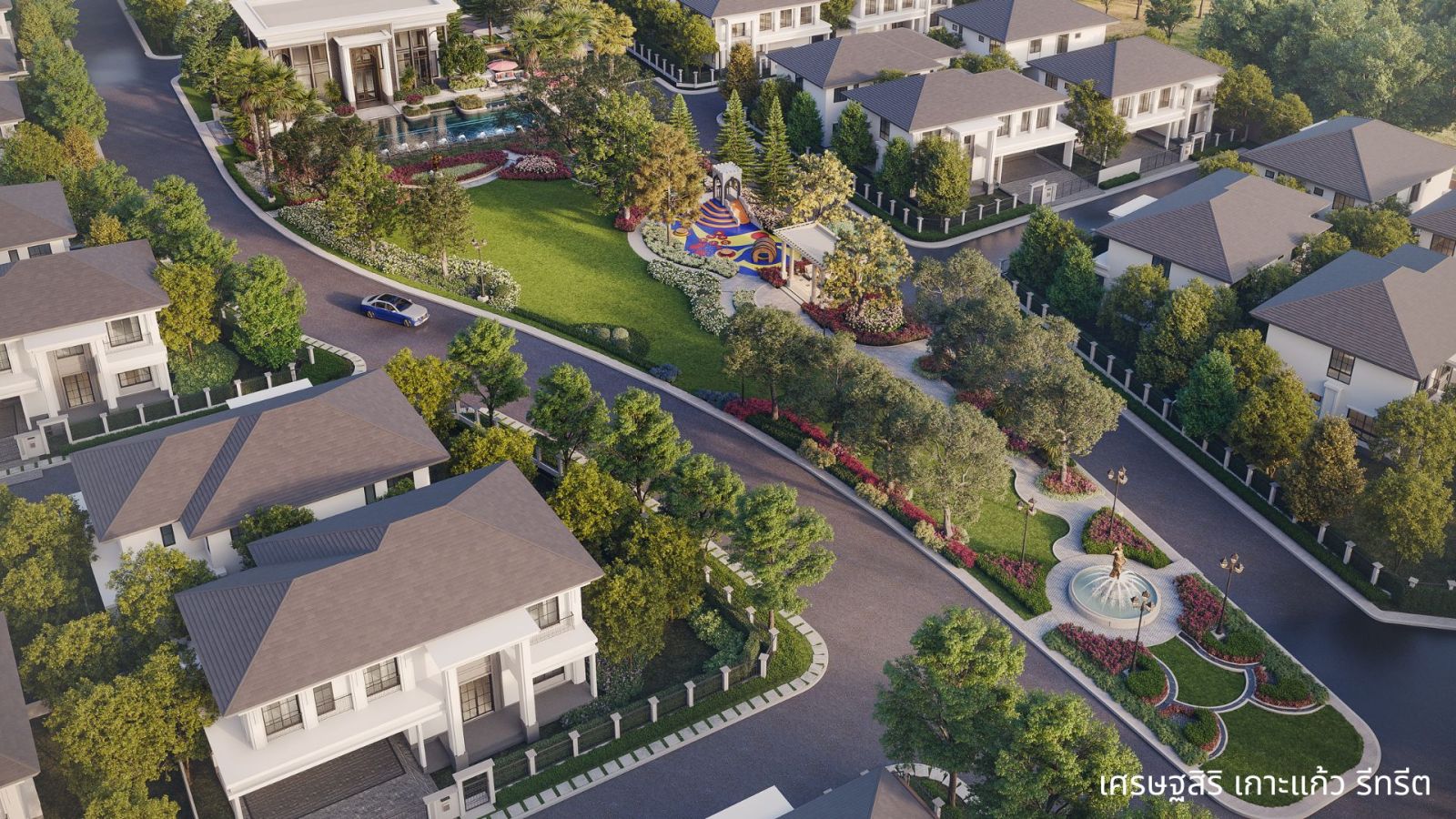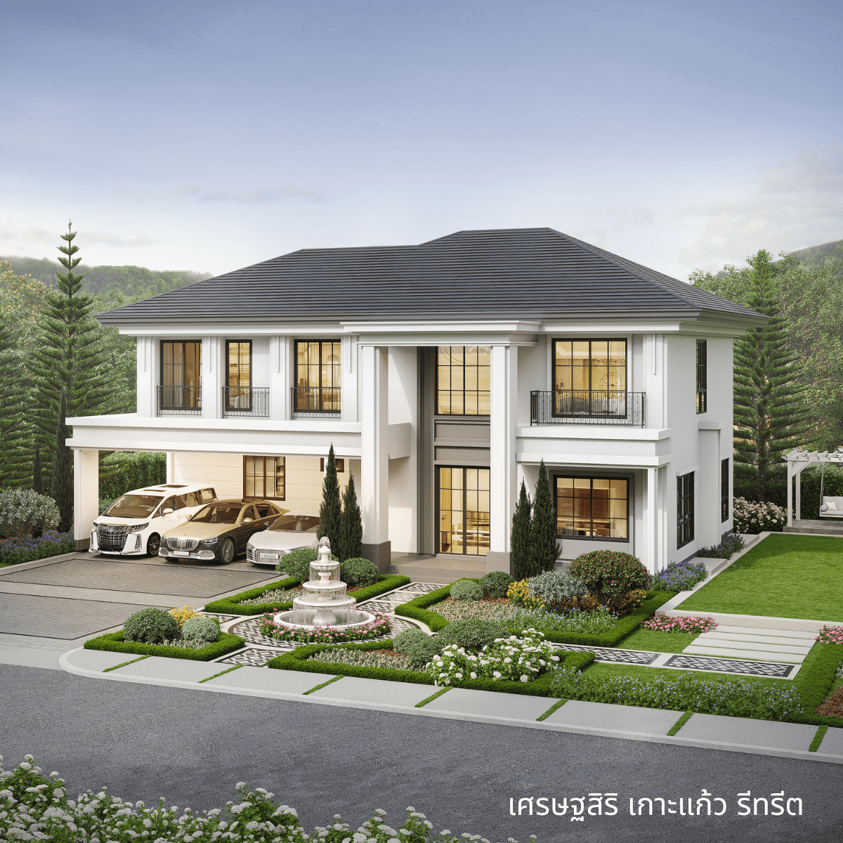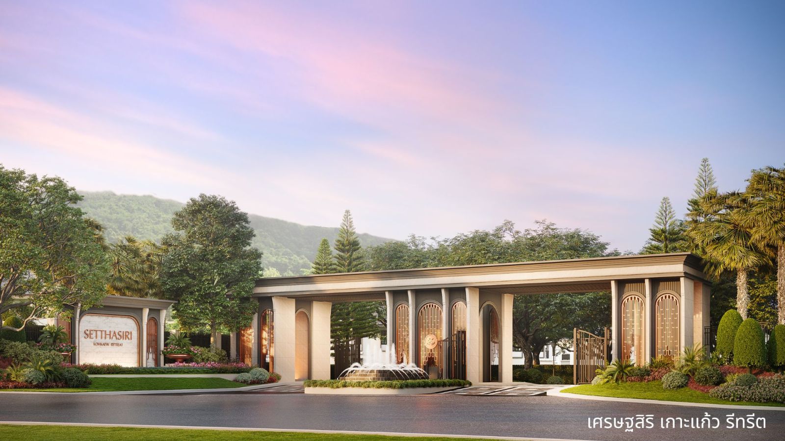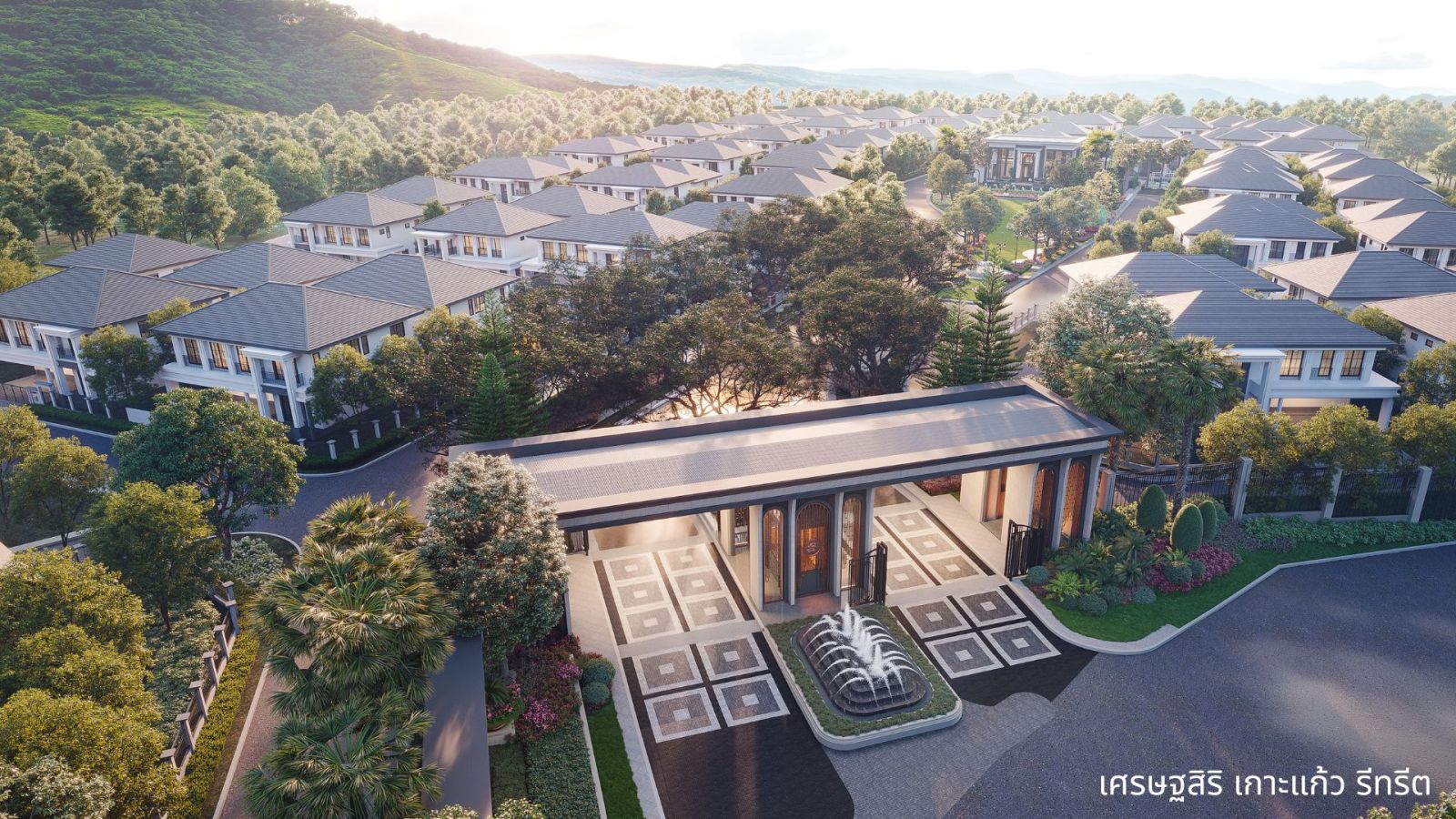 บ้านเดี่ยวหรูสไตล์โมเดิร์น คลาสสิค งดงามเหนือกาลเวลา จาก Timeless Design โดดเด่นตั้งแต่ด้านหน้าโครงการด้วย Main gate ขนาดใหญ่รองรับถนนหลักที่เชื่อมต่อไปยังหาดป่าตอง พร้อมน้ำพุบริเวณหน้าโครงการ โดดเด่นตามแบบฉบับ “เศรษฐสิริ”