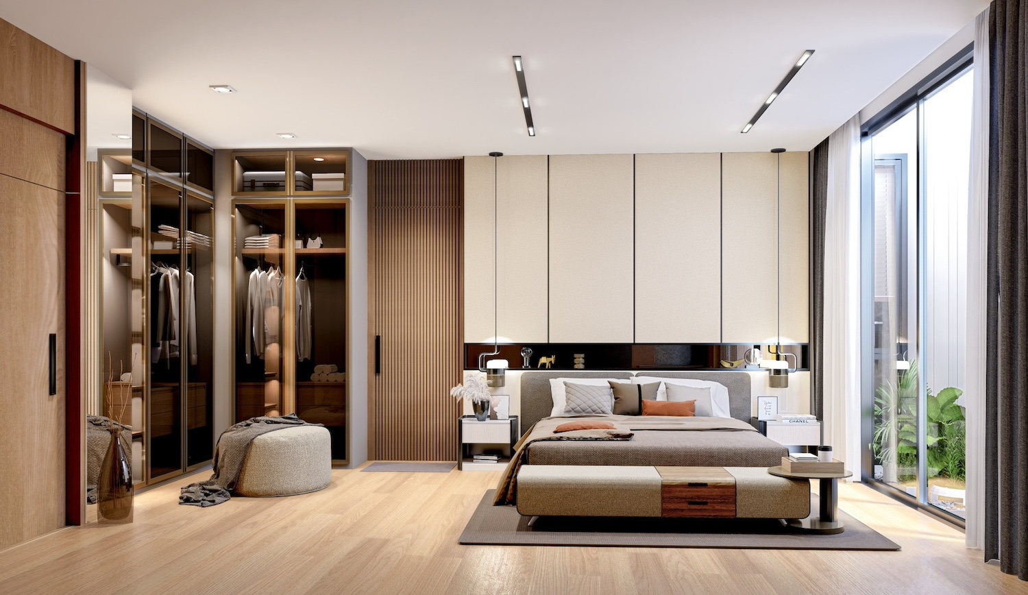 พื้นที่ Living Space ถูกจัดสรรให้มีมากกว่า 1 โซนภายในบ้าน ให้สมาชิกได้มีพื้นที่พักผ่อนเป็นของตัวเอง พร้อมพื้นที่ใช้สอยอเนกประสงค์ที่ปรับฟังก์ชันตามการใช้งานเฉพาะตัวของแต่ละครอบครัว ดีไซน์ห้องยังเปิดรับแสงธรรมชาติได้ตลอดทั้งวัน มอบความสว่าง ดูโปร่งสบายในบรรยากาศอบอุ่น และอีกหนึ่งไฮไลต์สำคัญคือ ห้องนอนมาสเตอร์ขนาดใหญ่ในสไตล์เพนต์เฮาส์พร้อมห้องน้ำและ Walk-in Closet ส่วนตัว ห้องแม่บ้านแยกเป็นสัดส่วนทุกหลัง เพื่อความเป็นส่วนตัวทั้งสำหรับผู้อยู่อาศัยและผู้ดูแล