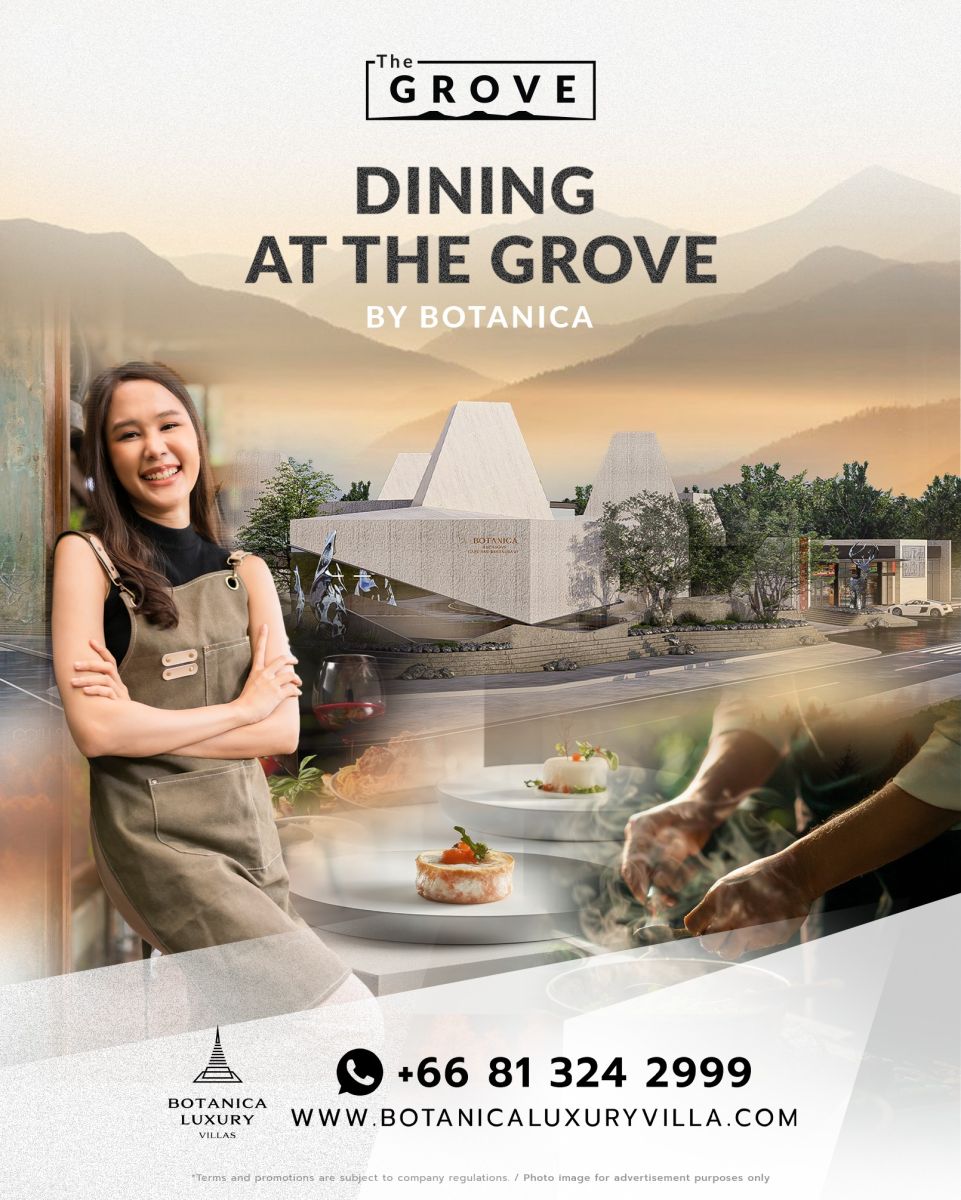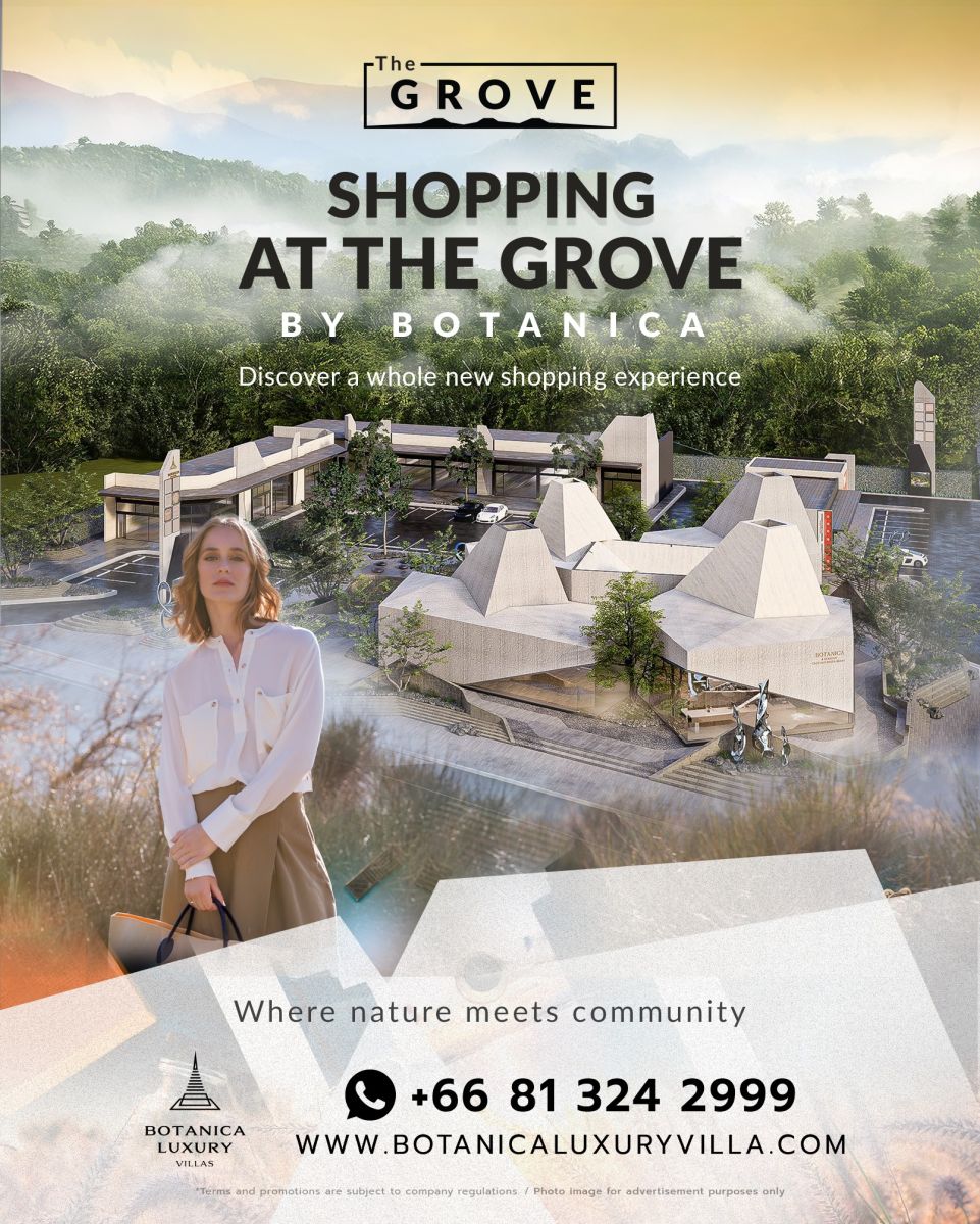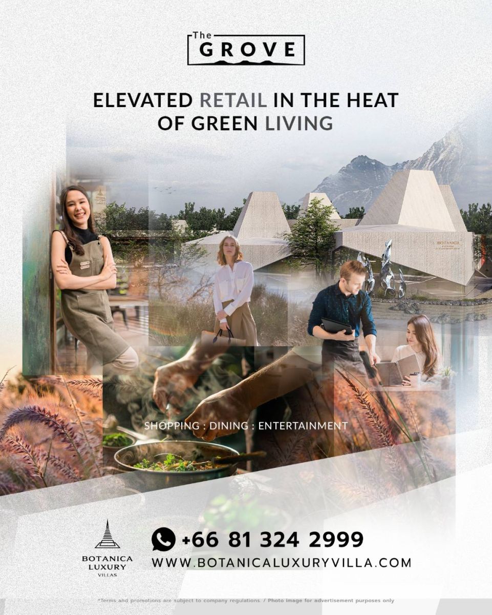 นายอรรถสิทธิ์ อินทรชูติ ทิ้งท้ายว่า The Grove by Botanica เป็นโปรเจกต์รีเทลคุณภาพที่สะท้อนดีเอ็นเอของโบทานิก้าฯ ในฐานะแบรนด์วิลล่าหรูอันดับหนึ่งของภูเก็ต ด้วยจุดแข็งด้านทำเลศักยภาพที่สอดรับเรียลดีมานด์ เราต้องการสร้างแลนด์มาร์กใหม่ที่ตอบโจทย์อีโคซิสเต็มของการอยู่อาศัย การท่องเที่ยว และการลงทุนในอนาคต
