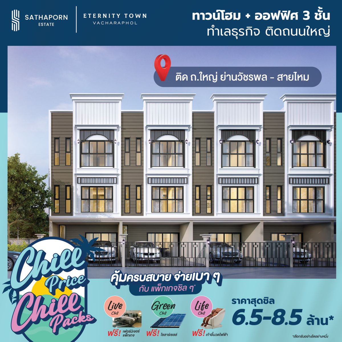 7. โครงการ “อิเธอร์นิตี้ ทาวน์ วัชรพล” (ETERNITY TOWN VACHARAPHOL) ทาวน์โฮม 3 ชั้น ไลฟ์สไตล์ธุรกิจ ติดถนนใหญ่ย่านวัชรพล-สายไหม ในราคาเริ่มต้น 6.5-8.5 ล้านบาท*