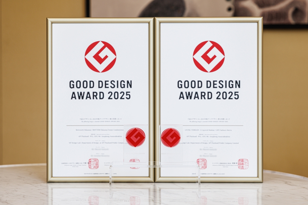 ‘ความเข้าใจชีวิต’ คือจุดเริ่มต้นของคุณภาพชีวิตที่ดี โดยโครงการเอพีที่ได้รับรางวัล GOOD DESIGN AWARD ทั้ง 2 โครงการร่วมทุน ได้แก่ RHYTHM Ekkamai Estate และ LIFE Sathorn Sierra ล้วนสะท้อนแนวคิดการออกแบบคุณภาพชีวิตที่ยิ่งใหญ่ ผ่านการออกแบบและการพัฒนาที่อยู่อาศัย ที่เชื่อมโยงผู้คนเข้ากับธรรมชาติและเมือง