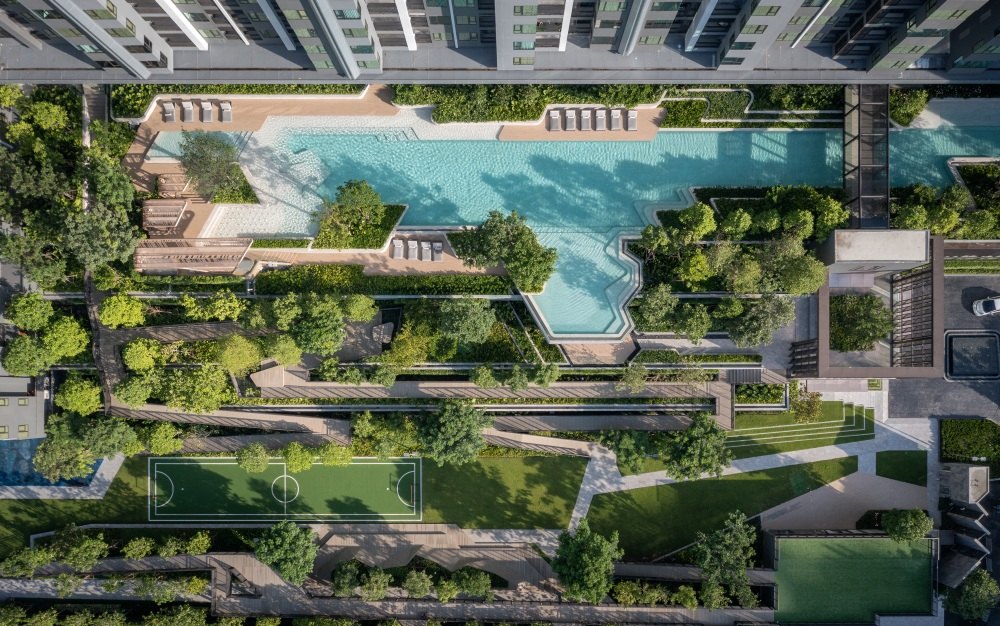 พื้นที่ส่วนกลาง LIVING TERRAIN: A Layered Habitat ที่ได้รับการดีไซน์เป็นแพลตฟอร์มพื้นที่ส่วนกลาง 5 ระดับ ไม่เพียงแต่สนับสนุนคุณภาพชีวิตที่ดี สุขภาพกายและสุขภาพใจของผู้อยู่อาศัยเท่านั้น แต่ยังช่วยปกป้องความหลากหลายทางชีวภาพในเมือง ผ่านการผนวกธรรมชาติเข้าเป็นส่วนหนึ่งของโครงสร้างอาคารอย่างเป็นระบบ”