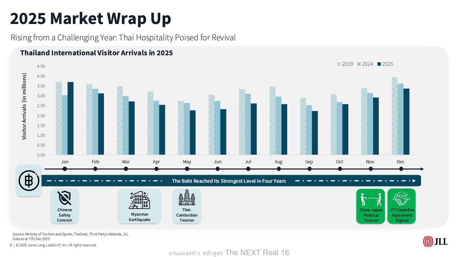 ส่วน นายการัณย์ คานิเยาว รองประธานอาวุโส ฝ่ายบริการลงทุนซื้อขาย ภาคพื้นเอเชียแปซิฟิก จากกลุ่มบริการการลงทุนด้านโรงแรม บริษัทโจนส์ แลง ลาซาลล์ (ประเทศไทย) จำกัด กล่าวว่า ตลาดอสังหาริมทรัพย์ไทยในปี 2569 ยังคงขับเคลื่อนด้วยการเปลี่ยนแปลงโครงสร้างเศรษฐกิจและเทคโนโลยี โดยนักลงทุนให้ความสำคัญกับสินทรัพย์ที่สามารถสร้างผลตอบแทนระยะยาวและรองรับการเติบโตในอนาคตมากขึ้น รวมถึงแนวทางการพัฒนาและบริหารจัดการที่สอดรับกับหลัก ESG ซึ่งจะเป็นปัจจัยสำคัญในการกำหนดทิศทางตลาด
