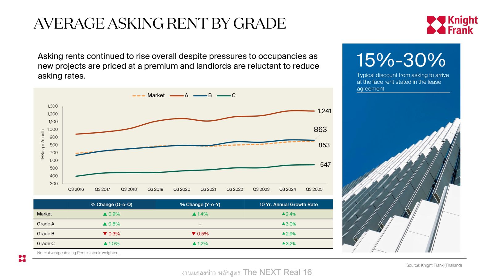 “ในตลาดอาคารสำนักงาน การเร่งตัวของซัพพลายเกรด A ใหม่จะยิ่งตอกย้ำการแข่งขัน และเร่งให้เกิดการแยกตัวของคุณภาพอาคารอย่างชัดเจน อาคารที่ไม่สามารถยกระดับหรือปรับบทบาทของตัวเองได้จะถูกทิ้งห่างออกจากตลาดมากขึ้น” นายณัฎฐา กล่าว