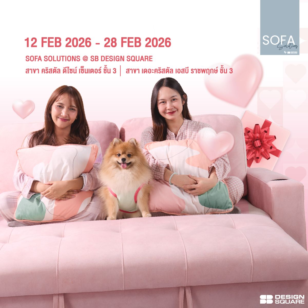 เอสบี ดีไซน์สแควร์ ร่วมกับ โซฟา โซลูชัน ต้อนรับเดือนแห่งความรักด้วยแคมเปญพิเศษ “Valentine – Share the Moment” ระหว่างวันที่ 12 – 28 กุมภาพันธ์ 2569 ชวนคู่รัก ครอบครัว และคนรักสัตว์ มาร่วมสร้างช่วงเวลาที่มีความหมายในพื้นที่ที่อบอุ่นที่สุดของบ้าน เพียงเลือกซื้อโซฟาในกลุ่ม Pet Friendly รับฟรีหมอนพรีเมียมพิมพ์ลายภาพถ่าย เพื่อเก็บความทรงจำแสนพิเศษไว้ใกล้ตัวในทุกวัน