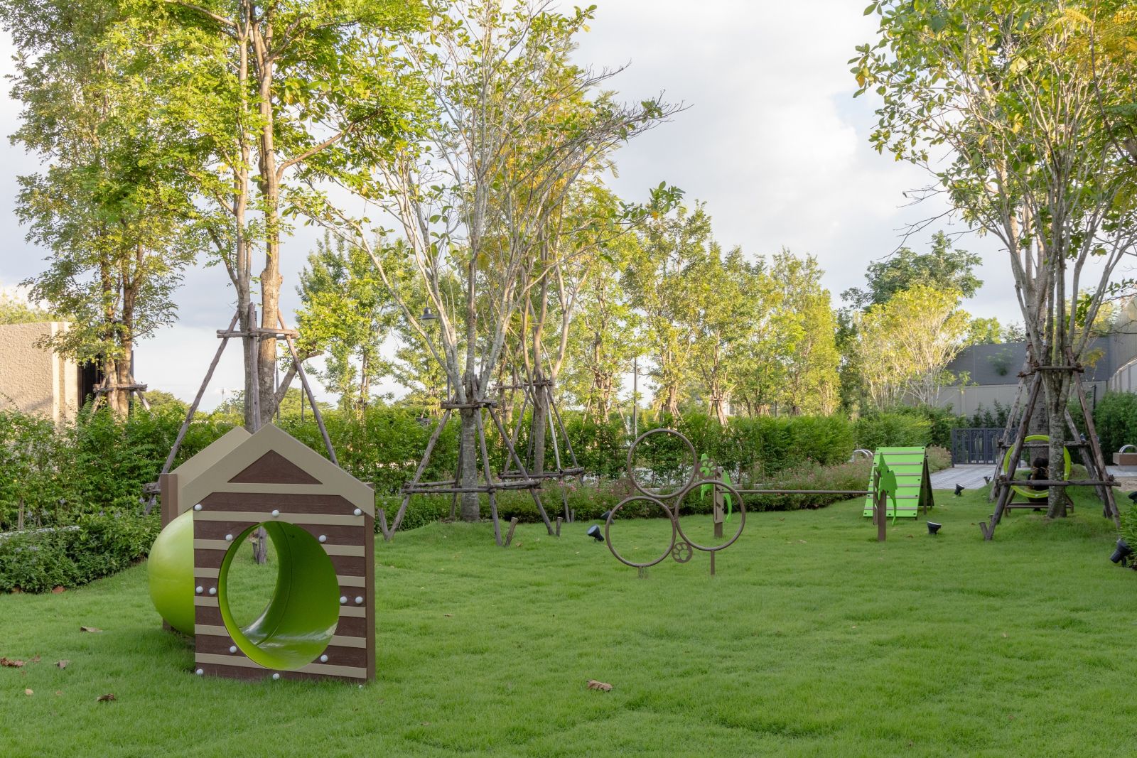 •    Pet Park ออกแบบให้ปลอดภัย เหมาะกับการใช้งานจริง และเป็นพื้นที่ที่ทุกคนอยู่ร่วมกันได้อย่างสบายใจ แบ่งโซนการใช้งานสำหรับ สุนัขพันธุ์เล็กและพันธุ์ใหญ่ ลดความเสี่ยงและเพิ่มความเหมาะสมในการใช้งาน จัดวางต้นไม้แบบ ปลูกเป็นเลเยอร์ เพื่อช่วยลดเสียงรบกวนจากสุนัข