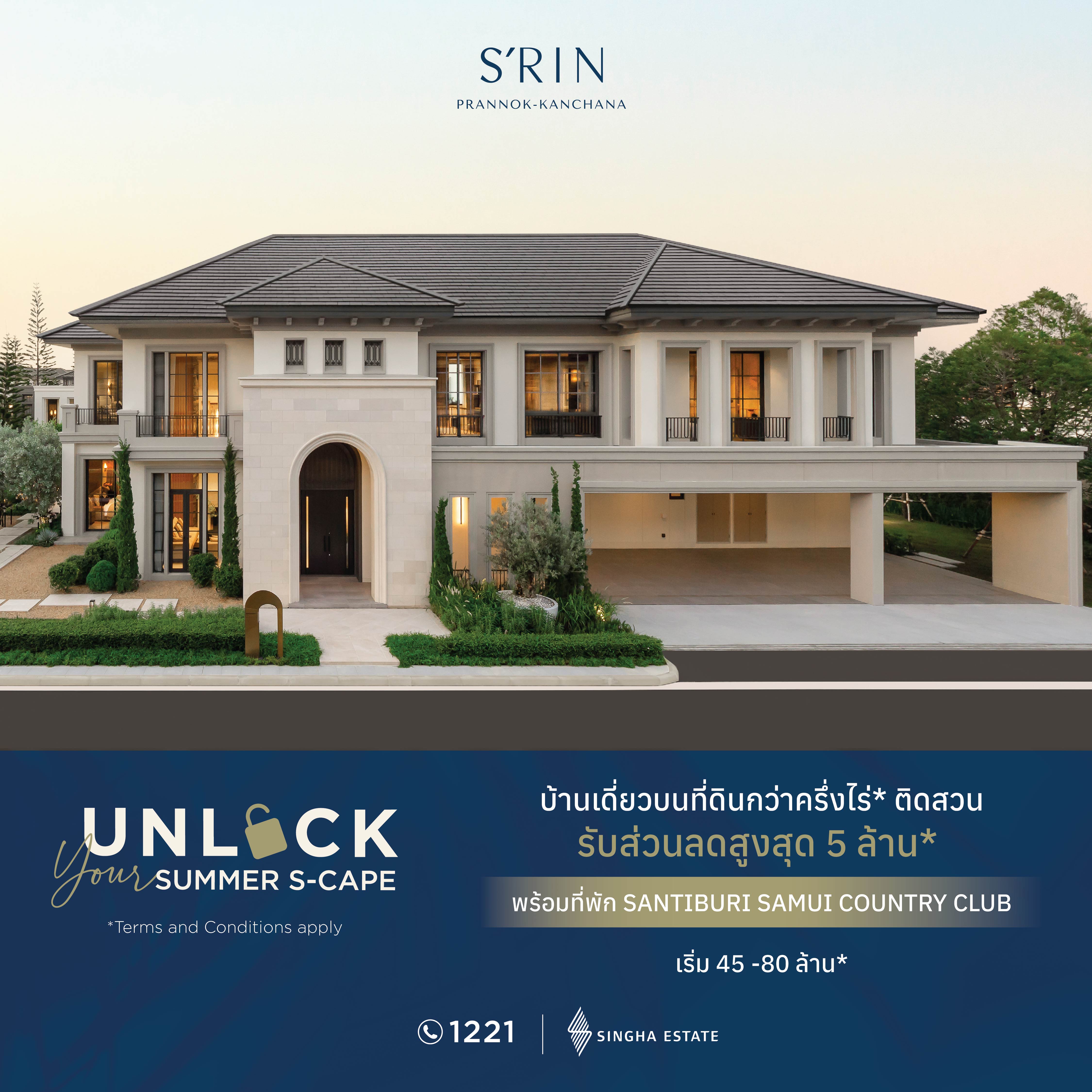 บริษัท สิงห์ เอสเตท จำกัด (มหาชน) หรือ S ผู้พัฒนาและลงทุนในอสังหาริมทรัพย์ระดับสากล จัดแคมเปญ “Unlock Your Summer S-Cape” ชวนเปิดประสบการณ์ซัมเมอร์เหนือระดับ พร้อมมอบเอกสิทธิ์สุดเอ็กซ์คลูซีฟ รับส่วนลดสูงสุด 20 ล้านบาท และทริปพักผ่อนสุดหรู