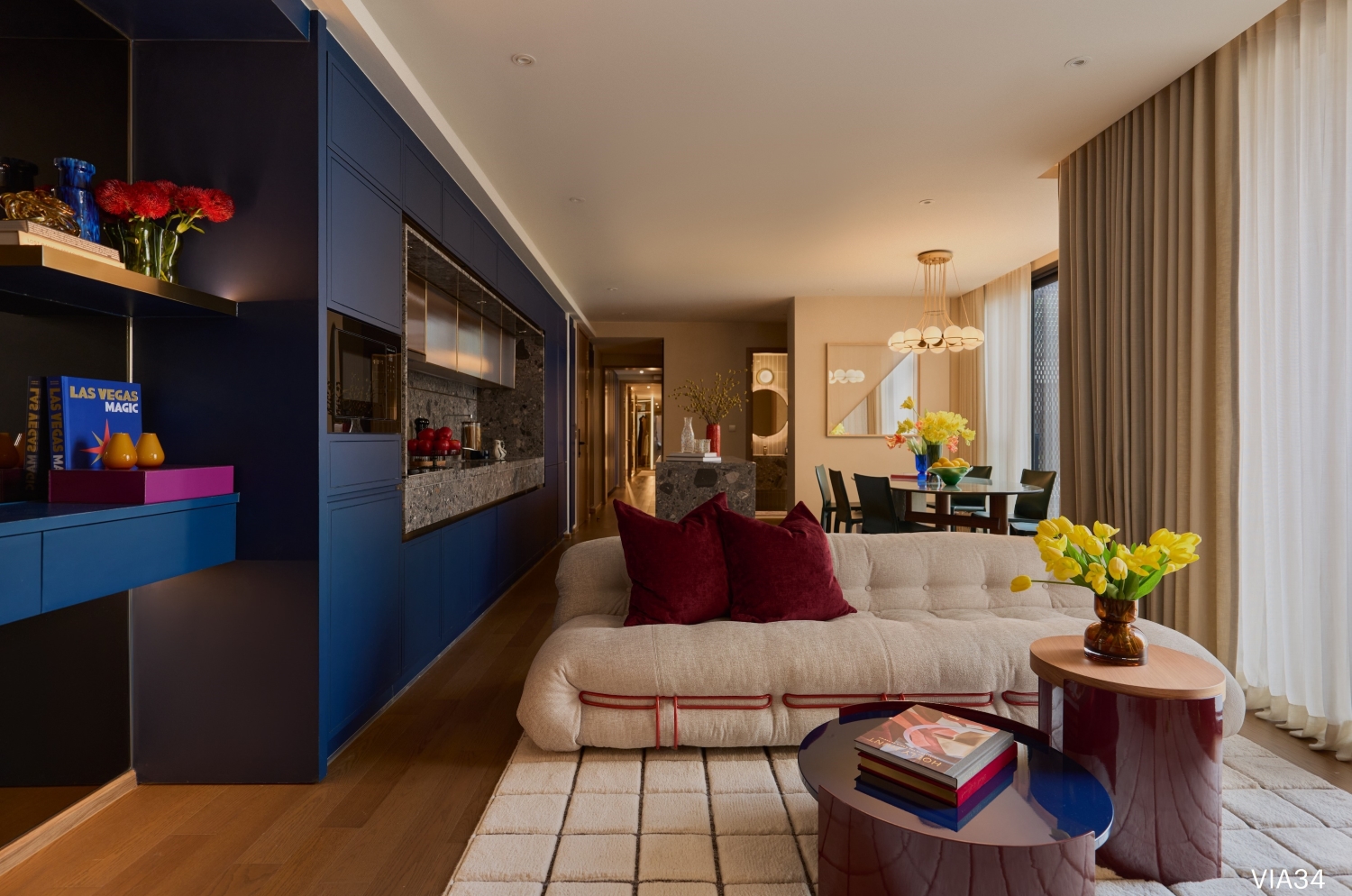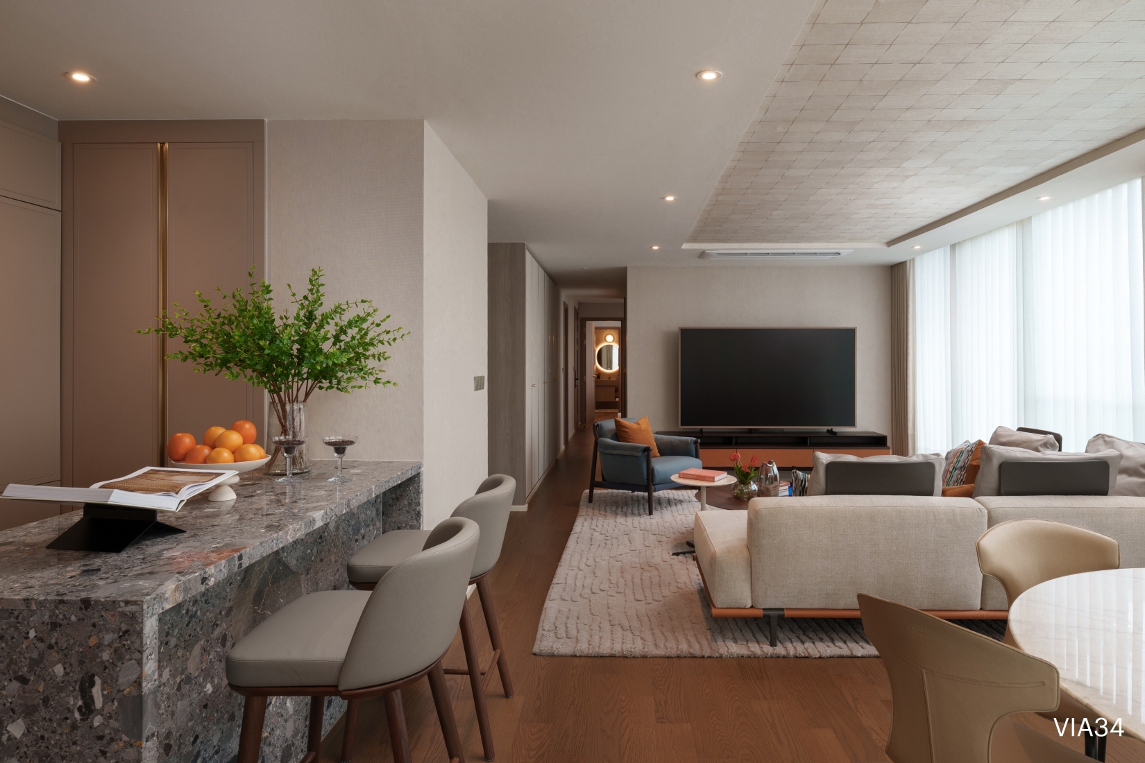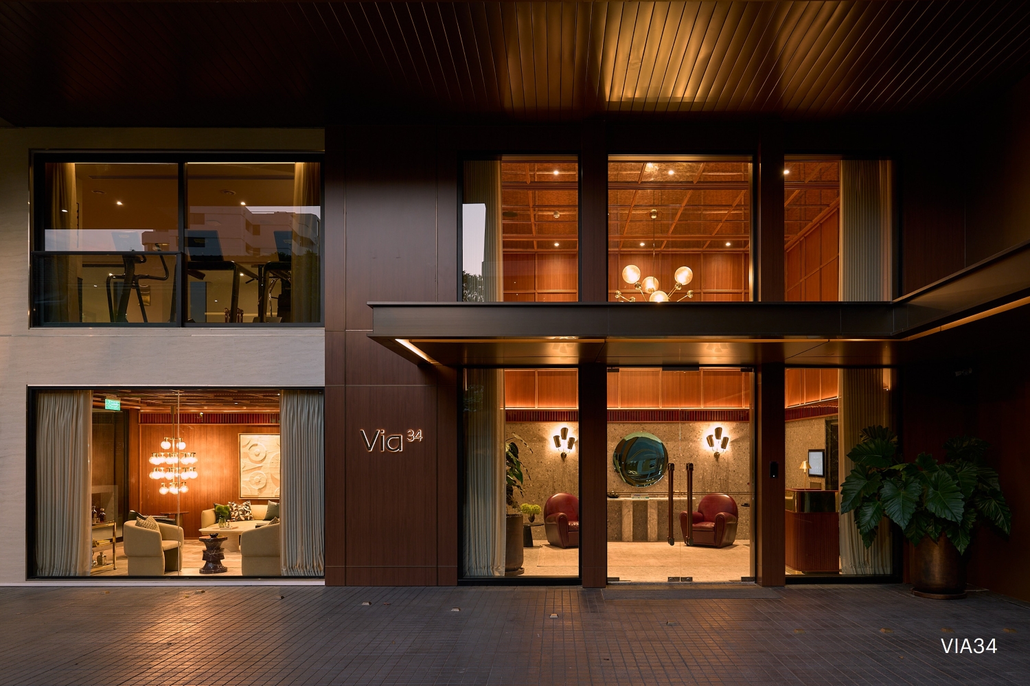 Via 34 ได้รับการรังสรรค์ให้มีเอกลักษณ์เฉพาะตัวถ่ายทอดผ่านแนวคิด "Making the Ordinary Extraordinary" ผสานความเรียบง่ายเข้ากับสุนทรียะแห่งศิลปะคิวบิสม์ (Cubism) ผ่านสถาปัตยกรรมร่วมสมัยที่ฉีกกรอบมุมมองเดิมด้วยรูปทรงเรขาคณิต พื้นที่ส่วนกลางได้รับการออกแบบให้มอบประสบการณ์เสมือนอยู่ในอาร์ตแกลเลอรี ด้วยการดีไซน์และเลือกใช้วัสดุชั้นเลิศ รวมถึงเฟอร์นิเจอร์หายาก จากแบรนด์ระดับโลกอย่าง Poltrona Frau จากประเทศอิตาลีที่คัดสรรมาอย่างพิถีพิถัน เสมือนเป็นงานศิลปะชิ้นเอก