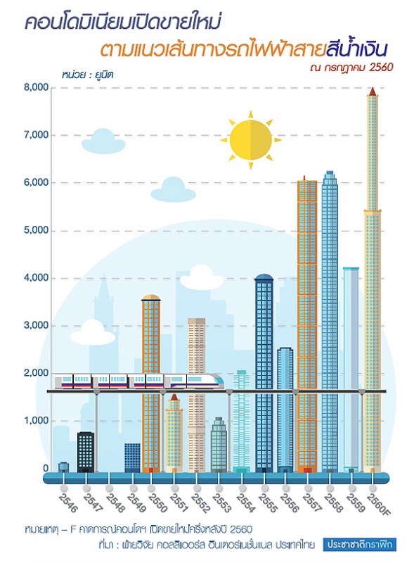 “มีคอนโดฯกำลังพัฒนาอยู่หลายโครงการ จะทยอยเสร็จพร้อมกับรถไฟฟ้าจะเปิดใช้ในปี 2562 พอดี และไม่ซ้ำรอยสายสีม่วง เพราะสายสีน้ำเงินเป็นการเดินรถเป็นวงกลมเชื่อมโยง 2 ฝั่งเจ้าพระยา อีกทั้งเป็นเส้นทางที่วิ่งเข้าเมือง ไม่ได้อยู่ชานเมืองเหมือนสายสีม่วง” นายวิทการกล่าวย้ำ