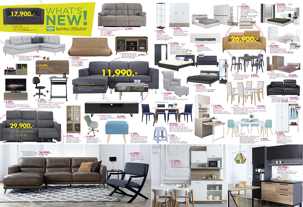 โซฟาหนังแท้ รุ่นเอ็นโซ่ ราคา 19,900.- จากเดิม 32,900.- , โซฟารูปตัวแอล รุ่นวิดอล่า +โต๊ะกลาง รุ่นเมซโซ่ ราคา 13,990.- จากเดิม 25,080.-, โซฟาผ้าปรับนอน 1 ที่นั่ง รุ่นจาลิส/พี ราคา 6,990.- จากเดิม 9,580.- พร้อมรับฟรี ตู้เตี้ย 3 ลิ้นชัก รุ่นแมกซ์ มูลค่า 2,590.- ,
