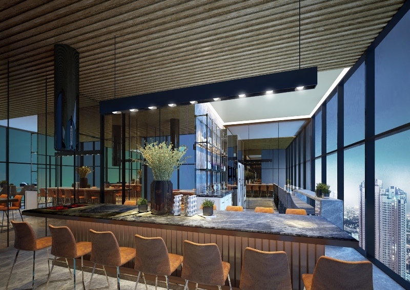 อาทิ เช่น Retreat Garden, Panoramic Fitness, Theater, Co-Living & Co-Working Lounge, Co-Dining & Sky Bar, Play Room, Kids Room, Private Onsen & Spa Room และสระว่ายน้ำ Rooftop ถึง 2 สระ คือ Blue Jacuzzi และ Lap Pool ในส่วนของห้องพักมีแบบห้อง vertical height ฝ้าเพดานสูง 4.4 เมตร และระบบ Bluetooth Sound System ที่จะทำให้คุณเพลิดเพลินกับการฟังเพลงได้ทุกที่ และเพิ่มความทันสมัยในเรื่องของระบบการจอดรถอัจฉริยะ