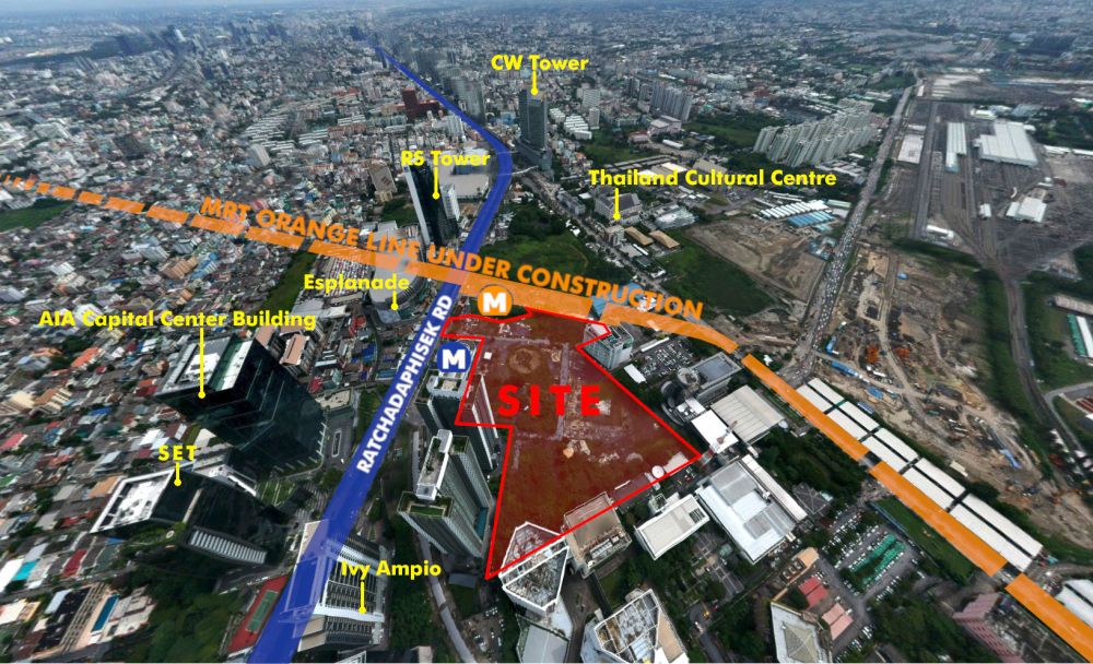 ที่ดินแปลงนี้ตั้งอยู่บนถนนรัชดาภิเษก ติดสถานีรถไฟฟ้าใต้ดิน 2 สถานี ซึ่งเป็นจุดเชื่อมต่อใหม่ของกรุงเทพฯ คือ รถไฟฟ้าใต้ดินสายสีน้ำเงินสถานีศูนย์วัฒนธรรมแห่งประเทศไทย และรถไฟฟ้าใต้ดินสายสีส้มสถานีศูนย์วัฒนธรรมแห่งประเทศไทย
