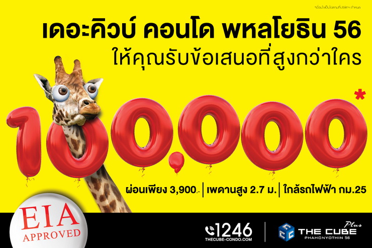 The Cube Plus Phahonyothin 56 ขานรับ EIA APPROVED ให้ข้อเสนอสูงสุด 1 แสนบาท*