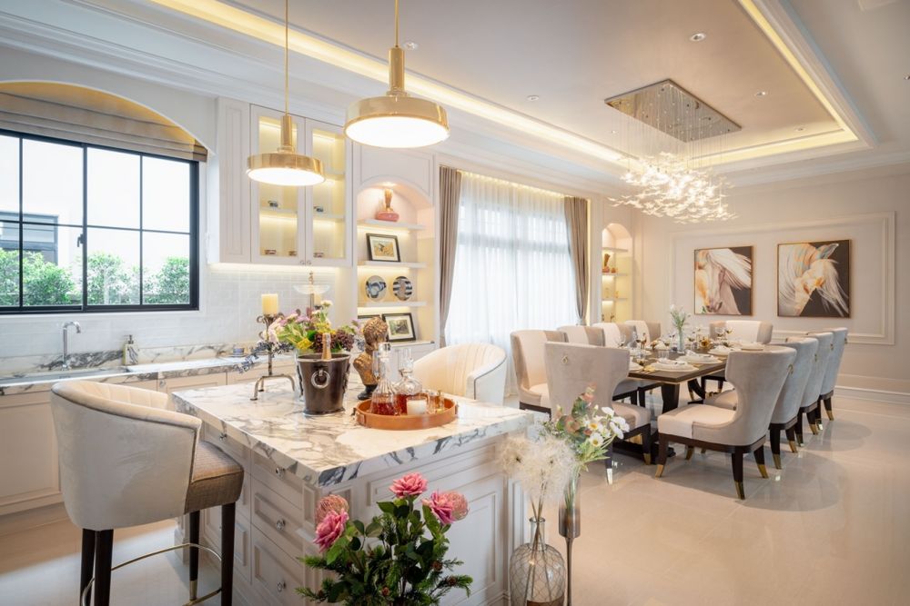 ในส่วนของห้องทำอาหาร (Delightful Dining) เป็นการรังสรรค์พื้นที่สำหรับทำกิจกรรมร่วมกันของคนทุกวัยในครอบครัว พร้อมเสริมสร้างบรรยากาศการทำอาหารให้ทุกมื้อเป็นมื้อสุดแสนพิเศษ เหมาะสมกับทุกโอกาส ไม่ว่าจะเป็นการรวมตัวของครอบครัว ต้อนรับแขกพิเศษ หรือทำกิจกรรมสนุกๆ ในครัว โดยการแบ่งเป็นพื้นที่ ครัวฝรั่ง พร้อมเคาน์เตอร์การเตรียมอาหารและของว่างให้อยู่ใกล้โต๊ะอาหาร และมีครัวไทยสำหรับทำอาหารไทยมื้อใหญ่ไว้ด้านใน คงความเรียบร้อยและเรียบหรูไว้อย่างลงตัว