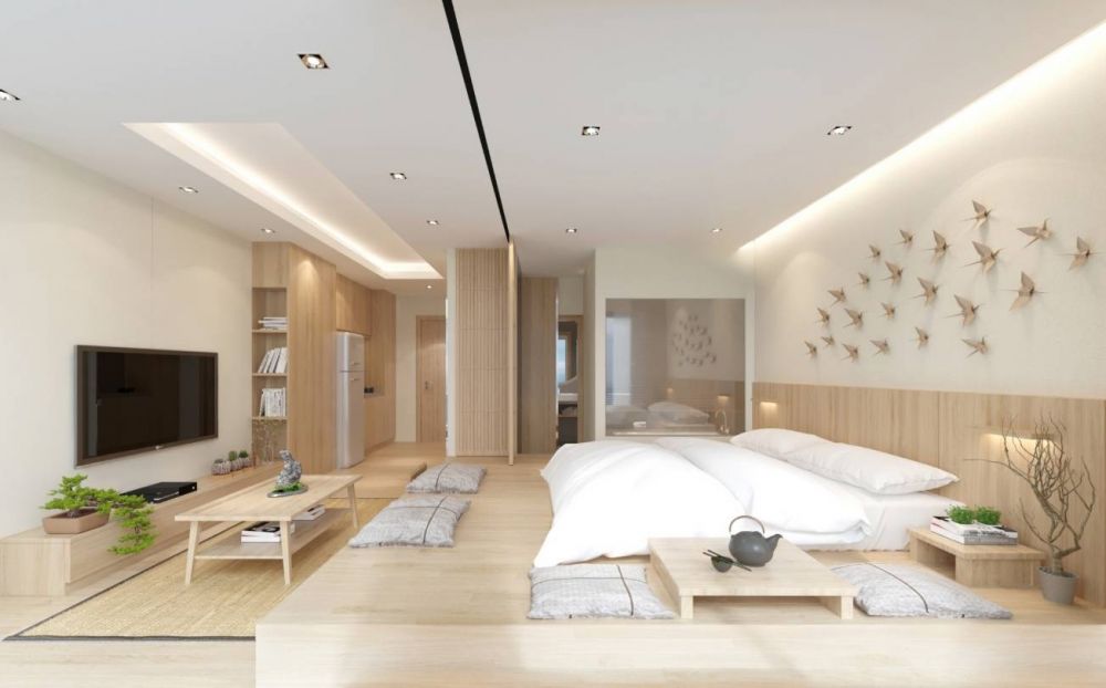 ในส่วนของรูปแบบการตกแต่งภายในห้องพักและส่วนกลาง เราเน้น รูปแบบที่เรียบง่าย ใช้โทนสีอิงธรรมชาติ เพื่อให้บรรยากาศผ่อนคลาย ในขณะเดียวกัน เราให้ความใส่ใจเรื่องการ จัดสรรรายละเอียดในทุกตารางพื้นที่ ให้เกิดประโยชน์สูงสุด ตามแบบฉบับวิถีชีวิต ของคนญี่ปุ่น