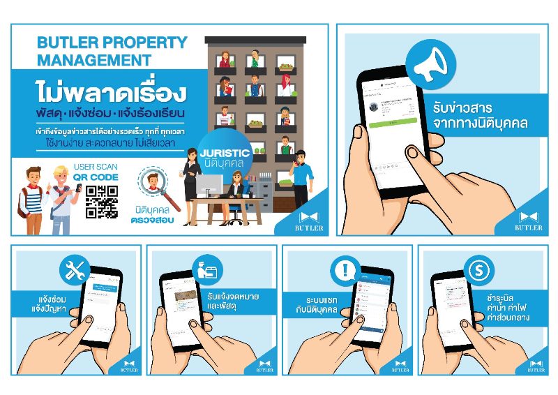 ผู้สนใจบริการของ BUTLER สามารถดาวน์โหลดแอปพลิเคชันได้แล้ววันนี้ทั้งใน App Store และ Play Store หรือคลิก www.digitalbutler.co.th สำหรับนิติบุคคลที่สนใจบริการของ BUTLER สามารถดูรายละเอียดเพิ่มเติมได้ที่ www.butlerjuristic.com