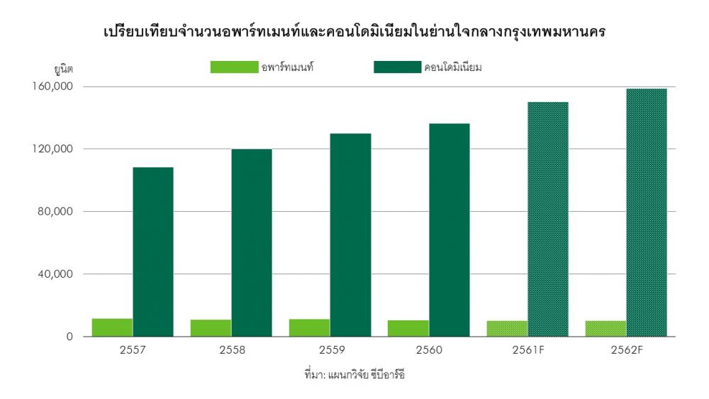 เปรียบเทียบจำนวนอพาร์ทเมนท์และคอนโดมิเนียมในย่านใจกลางกรุงเทพมหานคร