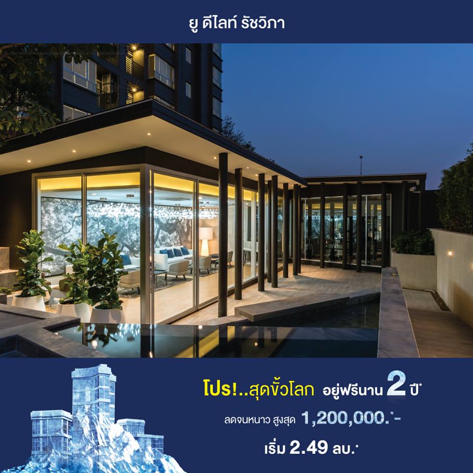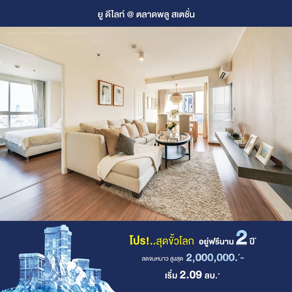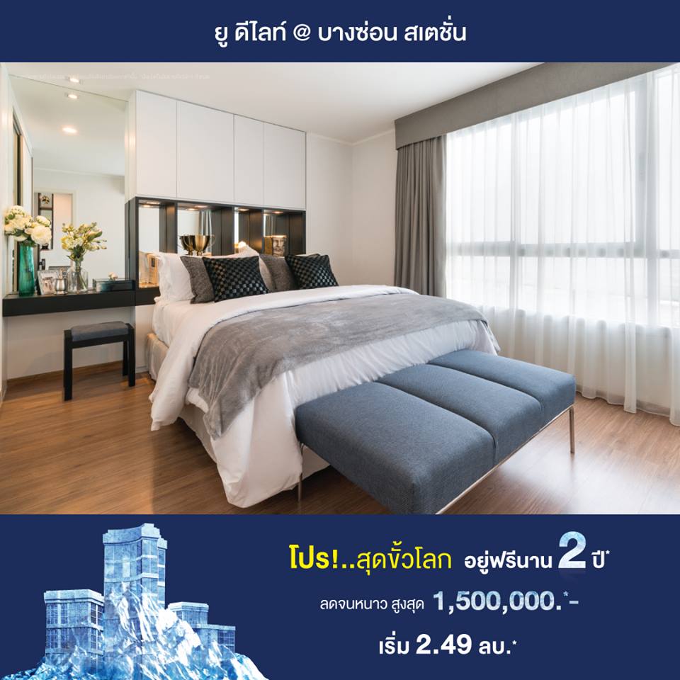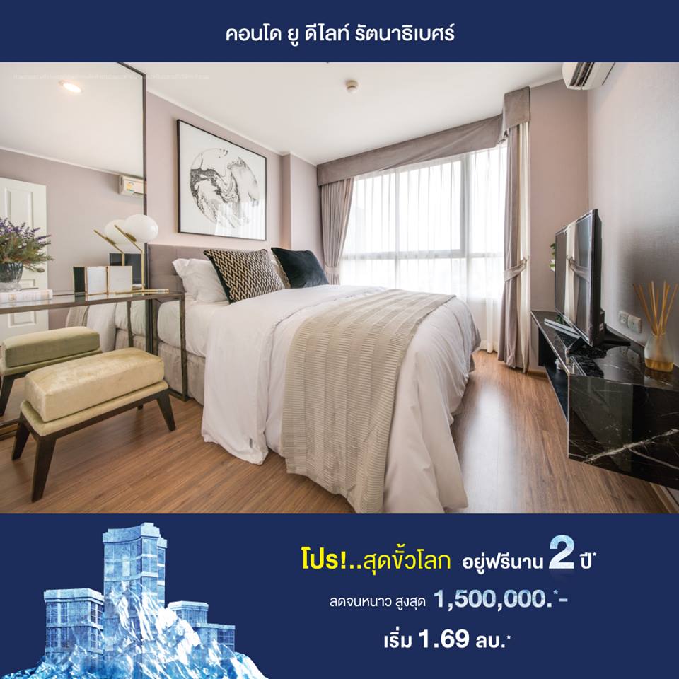 โปร! สุดขั้วโลก อยู่ฟรี นาน 2 ปี* ราคาพิเศษเริ่ม 1.59 - 2.79 ลบ.*ลดจนหนาว สูงสุด 2,000,000 บ.* อยู่ฟรีนาน 2 ปี ทุกค่าใช้จ่าย คอนโด ยู ดีไลท์ 6 ทำเล พร้อมอยู่ ใกล้รถไฟฟ้า จอง+สัญญา เพียง 5,000 บ.* ช้าหมดอดหนาว มีจำนวนจำกัด