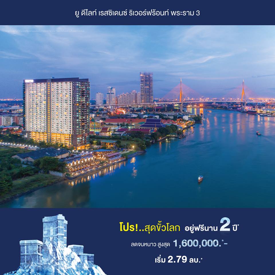 ยู ดีไลท์ เรสซิเดนซ์ ริเวอร์ฟร้อนท์ พระราม 3 : คอนโดติดแม่น้ำเจ้าพระยา เพียง 10 นาทีจากสาทร เริ่ม 2.79 ลบ.