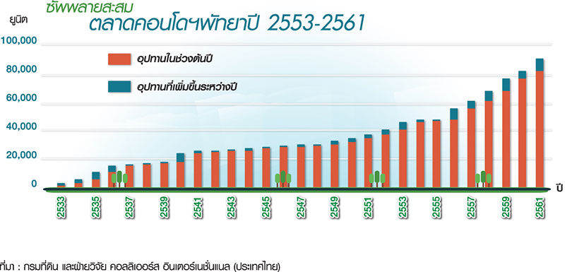 สถิติช่วงครึ่งปีหลัง 2561 ตลาดพัทยามีมากถึง 6,601 ยูนิต สูงกว่าช่วงครึ่งปีแรก 2,963 ยูนิต เท่ากับเพิ่มขึ้น 81.4%