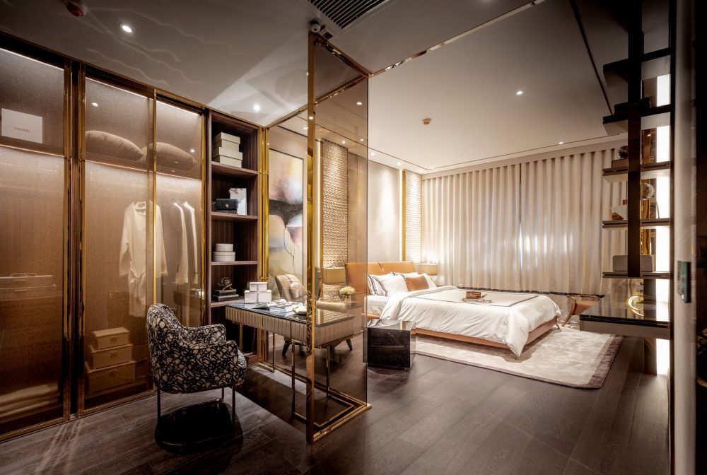 ตกแต่งด้วยวัสดุสีทองเมทัลลิกและไฟ warm white ทั่วทั้งห้องเพื่อเน้นบรรยากาศผ่อนคลายและอบอุ่น พร้อมตอบโจทย์ไลฟ์สไตล์การอยู่อาศัยคอนโดในเมืองด้วย walk in closet ที่กว้างขวางเป็นสัดส่วน รวมถึงห้องน้ำ ห้องนั่งเล่น และห้องครัว ขนาดใหญ่ให้อารมณ์เหมือนอยู่บ้าน ซึ่งไม่ว่าใครได้มาเห็นเป็นต้องหลงเสน่ห์ทุกราย