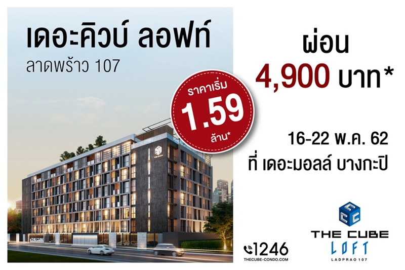 เดอะคิวบ์ ลอฟท์ ลาดพร้าว (The Cube Loft Ladprao 107) คอนโดมิเนียมสไตล์ลอฟท์โลว์ไรส์ 8 ชั้น ตามคอนเซ็ปต์ ‘Living Is Your Signature : สไตล์ที่อยู่ บอกให้รู้ว่าคุณคือใคร’ จาก บริษัท คิวบ์ เรียล พร็อพเพอร์ตี้ จำกัด จัดบูทแนะนำโครงการใหม่พร้อมมอบโปรโมชั่นพิเศษสำหรับผู้ที่ซื้อคอนโดมิเนียมเพื่อพักอาศัยเอง และเพื่อลงทุนอสังหาริมทรัพย์