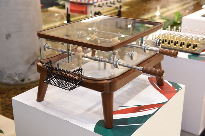 เติมเต็มความชิลระหว่างมื้อกาแฟกับ โต๊ะฟุตบอลอินเตอร์วอลโล (Intervallo) จากแบรนด์เทคเคล (Teckell) ตัวโต๊ะประกอบขึ้นจากไม้วอลนัทและแก้วคริสตัลที่มีความโค้งเล็กน้อย ใช้อุปกรณ์ตกแต่งพื้นผิวน้อยที่สุดเพื่อจะได้มองเห็นเกมอย่างชัดเจน ด้ามถือเป็นแบบเทเลสโคปิค รอดส์ คุณสมบัติไม่ยื่นออกนอกตัวโต๊ะ ป้องกันอุบัติเหตุ ปลอดภัยสำหรับผู้เล่น ขาโต๊ะเป็นไม้ สามารถปรับระดับได้