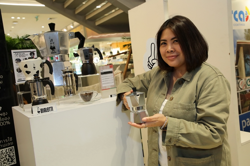 ต่อด้วยหม้อต้มกาแฟ แบรนด์ เบียเล็ตติ (Bialetti) จากอิตาลี ดีไซน์โมเดิร์น ถูกใจคอกาแฟแน่นอน เพราะสามารถพกพาไปด้วยทุกทริป ทุกสถานที่ที่ออกจากบ้าน