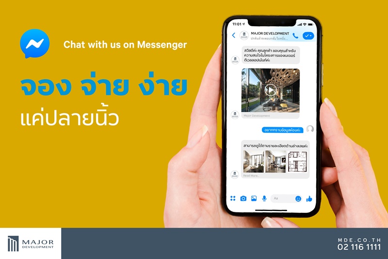 เมเจอร์ ดีเวลอปเม้นท์ นำเทรนด์ขายคอนโดฯ สุดล้ำดึง “Facebook” (เฟซบุ๊ก) โซเชียลมีเดียทรงพลังอันดับ 1 ของโลก ผ่าโซเชียลคอมเมิร์ซ กลยุทธ์การตลาดออนไลน์แบบใหม่ ขยายช่องทางการขายผ่านฟีเจอร์ Messenger (แมสเซนเจอร์) บน Facebook มิติใหม่ซื้อคอนโดฯ ถาม-ตอบแบบ Real-time (เรียลไทม์) ซื้อง่าย จ่ายสะดวก ครบจบที่เดียว ตลอด 24 ชม. สร้าง Customer Experience (คัสโตเมอร์ เอ็กซ์พีเรียนซ์) ที่เหนือกว่า มัดใจลูกค้ายุคดิจิทัล