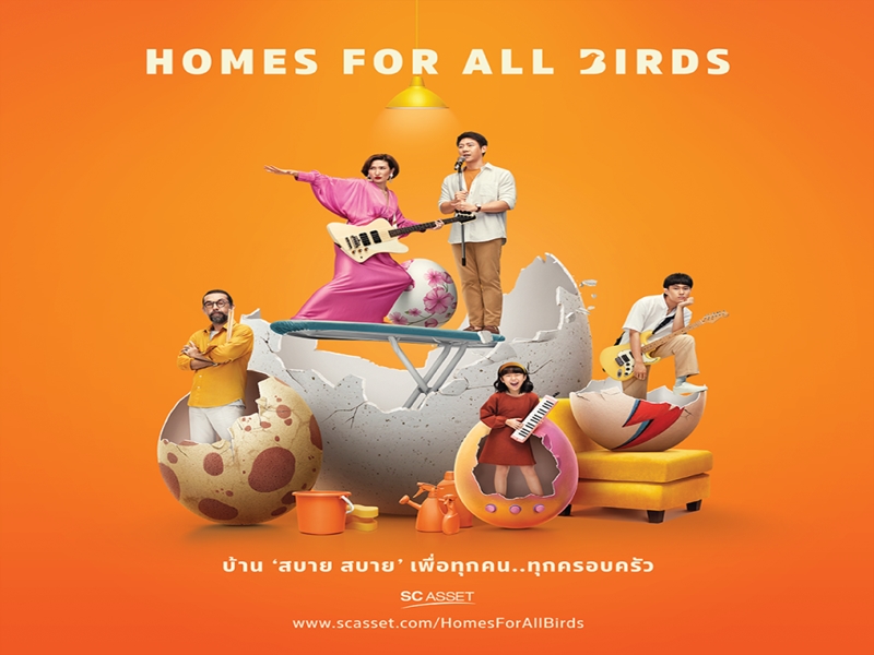 เอสซี แอสเสท สร้างสรรค์แคมเปญโฆษณาชุด “Homes for All Birds” บ้านสบาย...สบาย สำหรับทุกคน โดยหยิบ 5 บทเพลงฮิตโดนใจทุกเพศ ทุกวัย คือ เพลงคนไม่มีแฟน, ซ่อมได้, เล่าสู่กันฟัง, หมั่นคอยดูแลและรักษาดวงใจ และสบาย สบาย ของซุปเปอร์สตาร์ชื่อดังของเมืองไทย มาบอกเรื่องราวของ บ้านอยู่สบายไร้กังวล (Worry-Free Home) ในแบบฉบับเอสซี แอสเสท