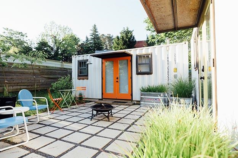 Tiny Eco-Friendly Shipping Containers, แอตแลนตา รัฐจอร์เจีย ประเทศสหรัฐอเมริกา บ้านที่ทำจากชิ้นส่วนตู้คอนเทนเนอร์ ในห้องครัวมีการใช้แก้วที่ทำจากวัสดุรีไซเคิล