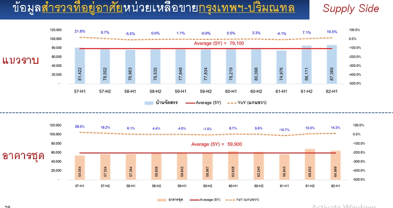 “โดยแนวราบเป็นการสัดส่วนสร้างเสร็จและขายได้สูงกว่า เพราะแนวรายทยอยขายและสร้างไป สามารถระบายได้ 50% จึงไม่แบกรับต้นทุนสูง สิ่งที่ห่วงและต้องจับตาคือคอนโดสร้างเสร็จและเหลือขาย 17,362 หน่วย ที่สูงกว่าค่าเฉลี่ย 5 ปี และยังมีกลุ่มเหลือขายอยู่ระหว่างสร้างอีก 35,289 หน่วย และยังคอนโดเหลือขายที่ยังไม่ได้สร้างอีก 12,318 หน่วย