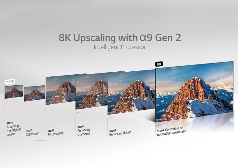 นอกจากการการันตีประสิทธิภาพความละเอียดของหน้าจอด้วยมาตรฐานระดับโลกแล้ว ทีวี OLED 8K ของแอลจีที่ได้เริ่มวางขายในเดือนกันยายนที่ผ่านมาเป็นครั้งแรกของโลก ยังเป็นทีวี OLED ขนาดใหญ่ที่สุดที่ได้ออกสู่ตลาด ด้วยขนาด 88 นิ้ว ซึ่งทั้งทีวี OLED 8K และทีวี NanoCell 8K มาพร้อมชิปประมวลผลอัจฉริยะอัลฟา 9 เจน 2 8K ที่ได้รับการพัฒนาขึ้นมาโดยเฉพาะเพื่อรองรับความละเอียดแบบสูงสุด พร้อมเทคโนโลยี 8K Upscaling ช่วยอัพเกรดความละเอียดของคอนเทนต์จาก 4K และ Full HD ให้เทียบเท่าระดับ 8K