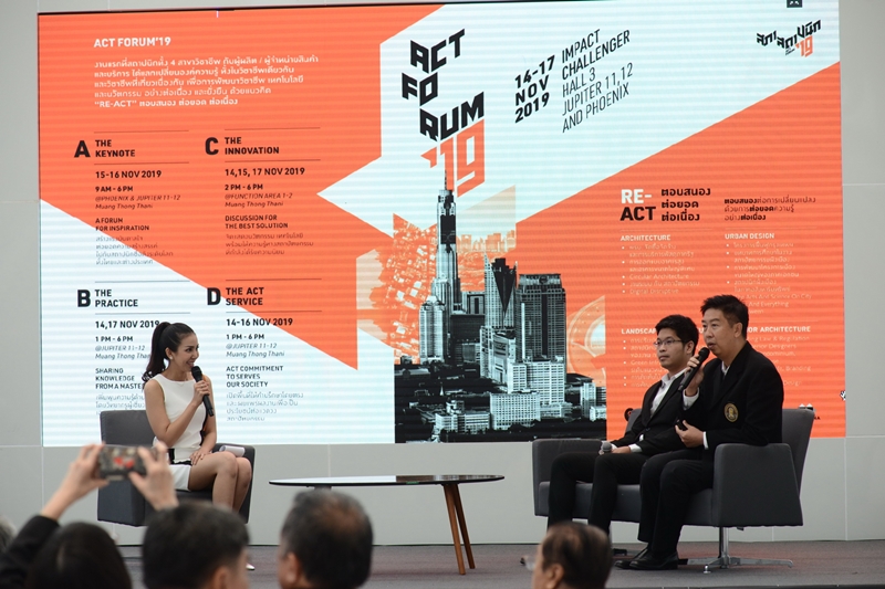 สภาสถาปนิกร่วมกับบริษัท อารยะ เอ็กซ์โป จำกัด ปักธงเปิดงาน สภาสถาปนิก’19 งานประชุมนานาชาติทางสถาปัตยกรรมและแสดงเทคโนโลยีผลิตภัณฑ์ก่อสร้างที่ครบถ้วนและยิ่งใหญ่ที่สุดของเมืองไทย ภายใต้แนวคิด “RE-ACT: ตอบสนอง ต่อยอด ต่อเนื่อง” ระหว่างวันที่ 14 – 17 พฤศจิกายน 2562 ณ อิมแพ็ค ชาเลนเจอร์ ฮอลล์ เมืองทองธานี