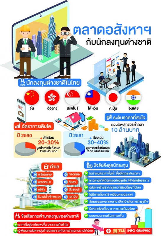 พบปัจจุบันมีชาวญี่ปุ่นพักอาศัยอยู่ในประเทศไทยจำนวนมาก และส่วนหนึ่งมีการซื้ออสังหาฯ ไทยในลักษณะเก็งกำไรขายต่อ แต่คาดในอนาคตรูปแบบการลงทุนจะเปลี่ยนไปสู่การซื้อเพื่อลงทุน หวังผลตอบแทนการปล่อยเช่าในระยะยาวมากขึ้น