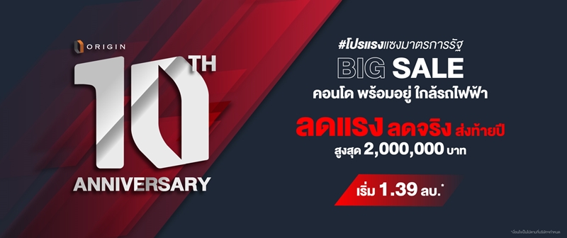 ฉลองครบรอบ 10 ปี ออริจิ้น พร็อพเพอร์ตี้ ผู้พัฒนาอสังหาริมทรัพย์ครบวงจร มอบอภิสิทธิ์พิเศษที่เหนือกว่า ส่งโปรแรงแซงมาตรการรัฐ ภายใต้แคมเปญ 10 ปี Origin ลดกระหน่ำสะท้านวงการ สูงสุด 2 ล้านบาท ร่วมกับ 12 คอนโดพร้อมอยู่ ทำเลรถไฟฟ้า ราคาเริ่มต้น 1.39 ลบ.* อาทิ เคนซิงตัน สุขุมวิท เทพารักษ์, ไนท์บริดจ์ พหลโยธิน-อินเตอร์เชนจ์, นอตติ้ง ฮิลล์ สุขุมวิท-แพรกษา, นอตติ้ง ฮิลล์ สุขุมวิท 105, บีลอฟท์ สุขุมวิท 107, บี ลอฟท์ ไลท์ สุขุมวิท 115 ฯลฯ ผู้สนใจสามารถลงทะเบียนรับสิทธิ์ ตั้งแต่วันนี้ จนถึง 15 ธ.ค 62 คลิกที่ https://www.origin.co.th/condo/readytomove/