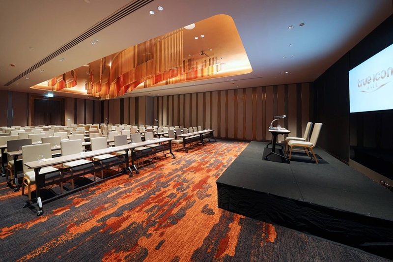 ซึ่งจะดึงดูดงานประชุมและการแสดงที่สำคัญและเหนือระดับอย่างไม่เคยมีมาก่อน เข้าสู่ประเทศไทย โดยความโดดเด่นที่เป็นเอกลักษณ์ของ ทรู ไอคอน ฮอลล์ อยู่ที่ทัศนียภาพที่สวยงามอลังการแบบพาโนรามาของแม่น้ำเจ้าพระยา”