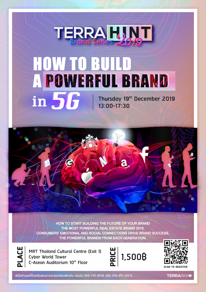 ใกล้เข้ามาแล้วกับงานสัมมนาการ “สร้างตราสินค้าให้ยิ่งใหญ่ในยุค 5G “How to Build a Powerful Brand in 5G.” โดย บริษัท เทอร์ร่า มีเดีย แอนด์ คอนซัลติ้ง จำกัด (TerraBKK) เพื่อเผยผลงานวิจัยเจาะลึกพฤติกรรมผู้บริโภคทุกวัย