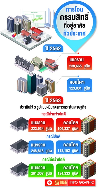 ขณะที่ภาพโดยรวมมีการโอนกรรมสิทธิ์ที่อยู่อาศัยทุกประเภททุกระดับราคาในพื้นที่กรุงเทพฯ-ปริมณฑล รวม 53,936 หน่วย หรือคิดเป็น 53% เพิ่มขึ้นจากช่วงเดียวกันของปี 2561 ถึง 10.9% เป็นการโอนกรรมสิทธิ์ในภูมิภาค 47,768 หน่วย คิดเป็น 47.0% หรือเพิ่มขึ้นจากช่วงเดียวกันของปี 2561 ประมาณ 13%