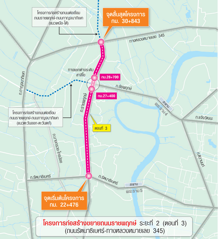 โดยกรมทางหลวงชนบท(ทช.) เป็นเจ้าของโครงการซึ่ง “ถนนราชพฤกษ์” ได้ก่อสร้างและเปิดใช้บริการมาตั้งแต่ปี 2546 ปัจจุบันมีปริมาณการจราจรประมาณ 5.5 หมื่นคันต่อวัน ส่งผลให้ถนนราชพฤกษ์ไม่สามารถรองรับการจราจรที่เพิ่มสูงขึ้นอย่างต่อเนื่องได้ ทำให้ประสิทธิภาพของถนนราชพฤกษ์ลดลง ก่อให้เกิดปัญหาด้านความปลอดภัยของผู้ใช้รถใช้ถนน และยังพบอีกว่ามีอุบัติเหตุเกิดขึ้นเป็นประจำ
