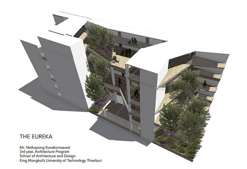 นัทธพงศ์ คุณากรสวัสดิ์ กับผลงาน The Eureka กับรางวัลรองชนะเลิศอันดับ 1 คว้ารางวัลความคิดสร้างสรรค์ไปครองด้วยการเน้นยูนิคที่ไม่ใหญ่โตมากนักเพราะเข้าใจผู้สูงอายุที่ต้องรับภาระดูแลรักษา แต่จะไปเน้นเรื่องชีวิตความเป็นอยู่ภายในคอนโดที่ส่งเสริมทั้งสุขภาพจิตและกาย นันธพงศ์ เน้นความเป็นโซเชียลสเปซเพราะเข้าใจถึงความเหงาภายในห้องแคบๆ เขาพยายามดึงผู้สูงอายุออกจากห้องสี่เหลี่ยม จึงออกแบบอาคารและทางเดินรวมถึงสวนหย่อมภายในอาคารที่เชื่อมถึงกัน มุมนั่งเล่นที่พร้อมจะเป็นโซเชียลสเปซได้ มีพื้นที่ออกกำลังกายร่วมกัน ทำอาหารร่วมกัน หรือทำสวนร่วมกัน เอาใจผู้สูงอายุที่รักสีเขียว รูปทรงอาคารที่สวยงามแปลกใหม่ มีส่วนเว้าและยื่นออกมาโชว์ให้เห็นพื้นที่สีเขียว
