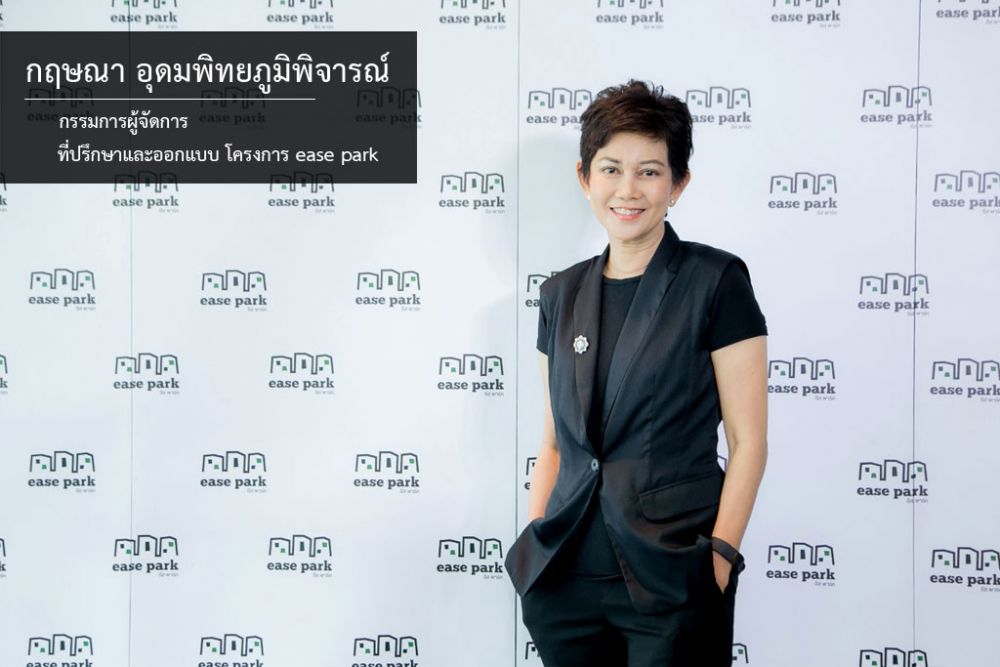 สำหรับโครงการ “ease park” เกิดขึ้นผ่านแนวคิดของความเรียบง่าย และความสะดวกสบาย ซึ่งคำว่า ease ก็มาจากคำว่า easy ที่มีความหมายถึงความสะดวกสบาย ง่ายๆ park หมายถึง สถานที่พักผ่อน ซึ่งความหมายรวมๆ ก็คือ เป็นสถานที่พักผ่อนที่เรียบง่ายและสะดวกสบาย ภายใต้คอนเซ็ปต์ Industrial ซึ่งตัวโครงการมีการตกแต่งแบบโชว์วัสดุ ไม้ เหล็ก ปูน อิฐ เป็นสถาปัตยกรรมที่มีความโดดเด่น แต่ไม่ล้าสมัย โดยตั้งอยู่ที่ถนนรามอินทรา กม. 4.5 พัฒนาเป็นโครงการ Community Mall สูง 3 ชั้น บนพื้นที่โครงการรวมประมาณ 3.5 ไร่ ติดถนนรามอินทรา หน้ากว้าง 60 เมตร พื้นที่ก่อสร้างประมาณ 7,000 ตารางเมตร มูลค่าโครงการประมาณ 200 ล้านบาท