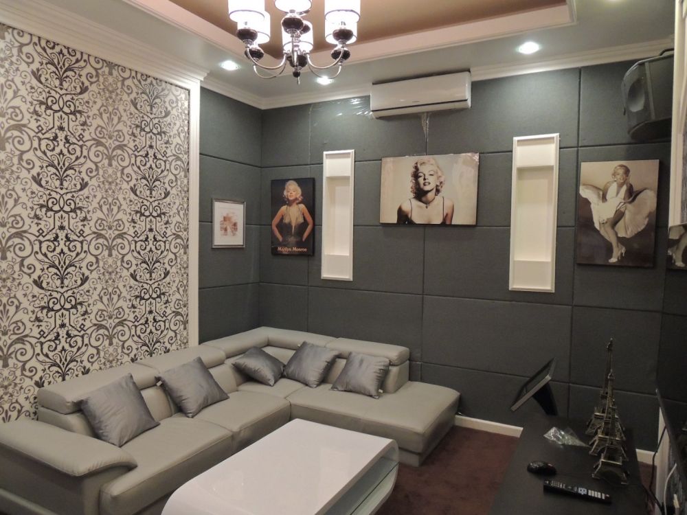 ปิดท้ายด้วย ห้องเอนเตอร์เทนเม้นท์ เช่น ห้องซ้อมดนตรี ห้องคาราโอเกะ หรือห้องโฮมเธียร์เตอร์ ลักษณะการใช้งานอาจคล้ายกับห้องนั่งเล่น แต่ห้องเอนเตอร์เทนเม้นท์อาจมีการใช้เสียงที่มีค่าเสียงรบกวนสูงกว่า จึงเป็นห้องที่ควรเก็บเสียงไม่ให้รบกวนพื้นที่ข้างเคียง และป้องกันเสียงจากภายนอกเข้ามารบกวน ดังนั้นแนะนำให้ติดตั้งฉนวนป้องกันเสียงในโครงคร่าวและฉนวนดูดซับเสียงบริเวณผนังทั้ง 4 ด้าน ดีไซน์และรูปแบบการจัดเรียงฉนวนให้คำนึงถึงไลฟ์สไตล์การใช้งานของห้อง เช่น ห้องโฮมเธียร์เตอร์เน้นการจัดเรียงแบบเรียบง่ายไม่มีลวดลายมากนัก อาจใช้ฉนวนรูปทรงสี่เหลี่ยมผืนผ้าขนาดใหญ่วางเรียงต่อกัน โดยใช้โทนสีเข้ม หรือดำ เพื่อลดการดึงดูดทางสายตา เนื่องจากเป็นห้องที่ต้องการการโฟกัสไปที่จุดๆ เดียว สำหรับห้องคาราโอเกะหรือห้องซ้อมดนตรี มัเน้นดีไซน์ที่สร้างความตื่นตัวและความสนุกสนานด้วยสีสันที่สดใส เรียงตัดกัน เช่น สีแดง ฟ้า เหลือง ดำ หรือหากเจ้าของบ้านชอบห้องที่ดูเรียบง่าย สบายตา ก็สามารถดีไซน์ผนังโดยใช้ฉนวนโทนสีอ่อน อย่างเทา ขาว เบจ ในการตกแต่งได้เช่นกัน