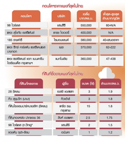 ในโอกาสส่งท้ายปีเก่าต้อนรับปีใหม่ "ประชาชาติโพล" รวบรวม 5 ที่สุดภาคอสังหาฯในด้านต่าง ๆ ในปี 2559 โดยเฉพาะความเป็นที่สุดแห่งที่สุด ทั้งราคาคอนโดมิเนียมแพงที่สุด ราคาที่ดินแพงที่สุด และอาคารที่สูงที่สุดของเมืองไทย