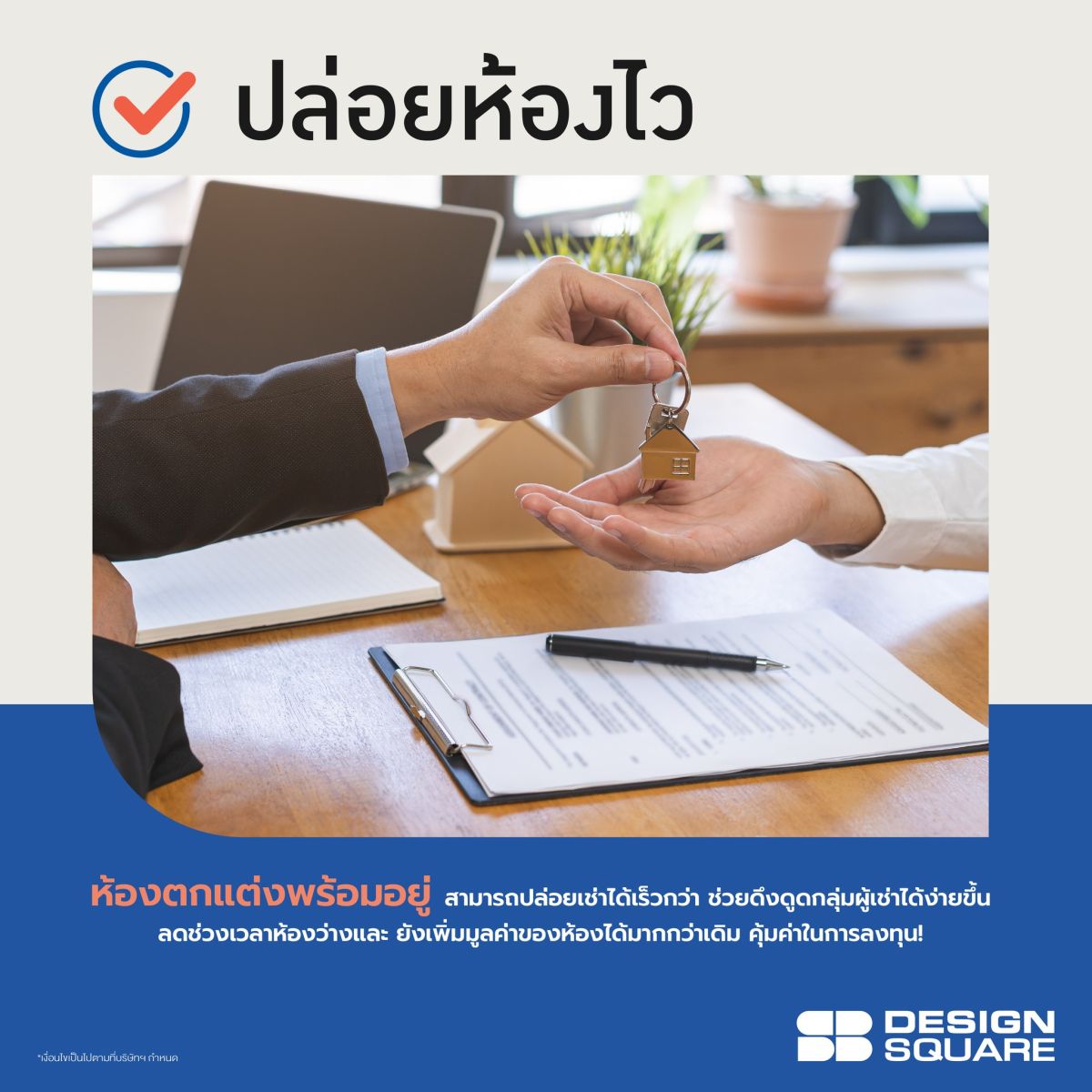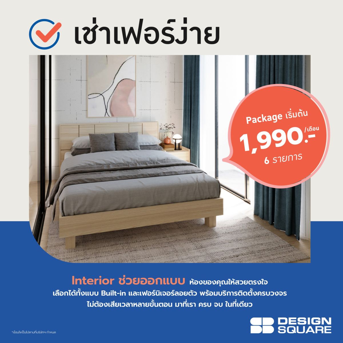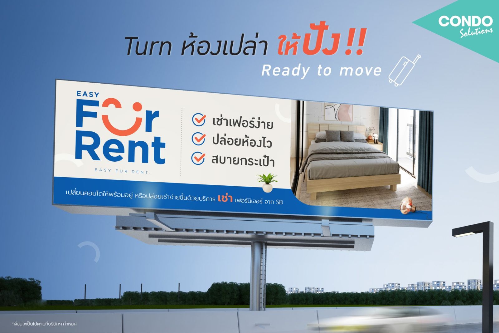 เอสบี ดีไซน์สแควร์ เล็งเห็นโอกาสนี้ เปิดตัวบริการใหม่ครั้งแรกในประเทศไทย “Easy Fur Rent” บริการเช่าเฟอร์ฯที่ช่วยให้เจ้าของห้องสามารถ Turn ห้องเปล่าให้ปัง ได้อย่างมีสไตล์ ช่วยเพิ่มศักยภาพในการสร้างรายได้จากค่าเช่า เนื่องจากห้องที่แต่งครบพร้อมอยู่สามารถตั้งราคาค่าเช่าได้สูงกว่าโดยเฉลี่ย 10-20% เมื่อเทียบกับห้องเปล่าทั่วไป