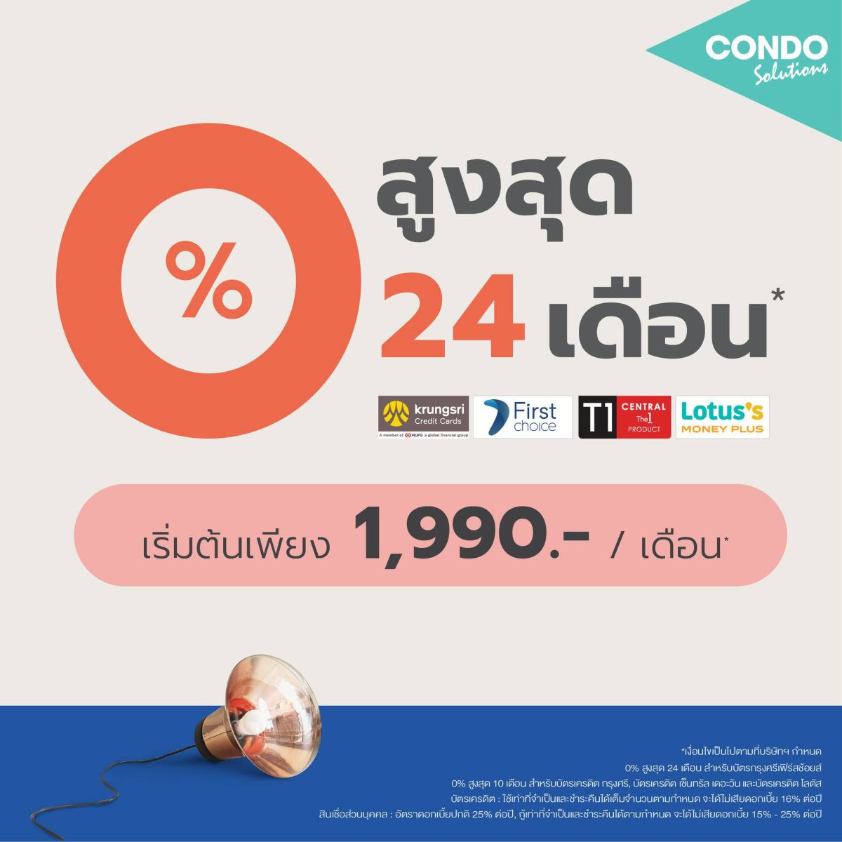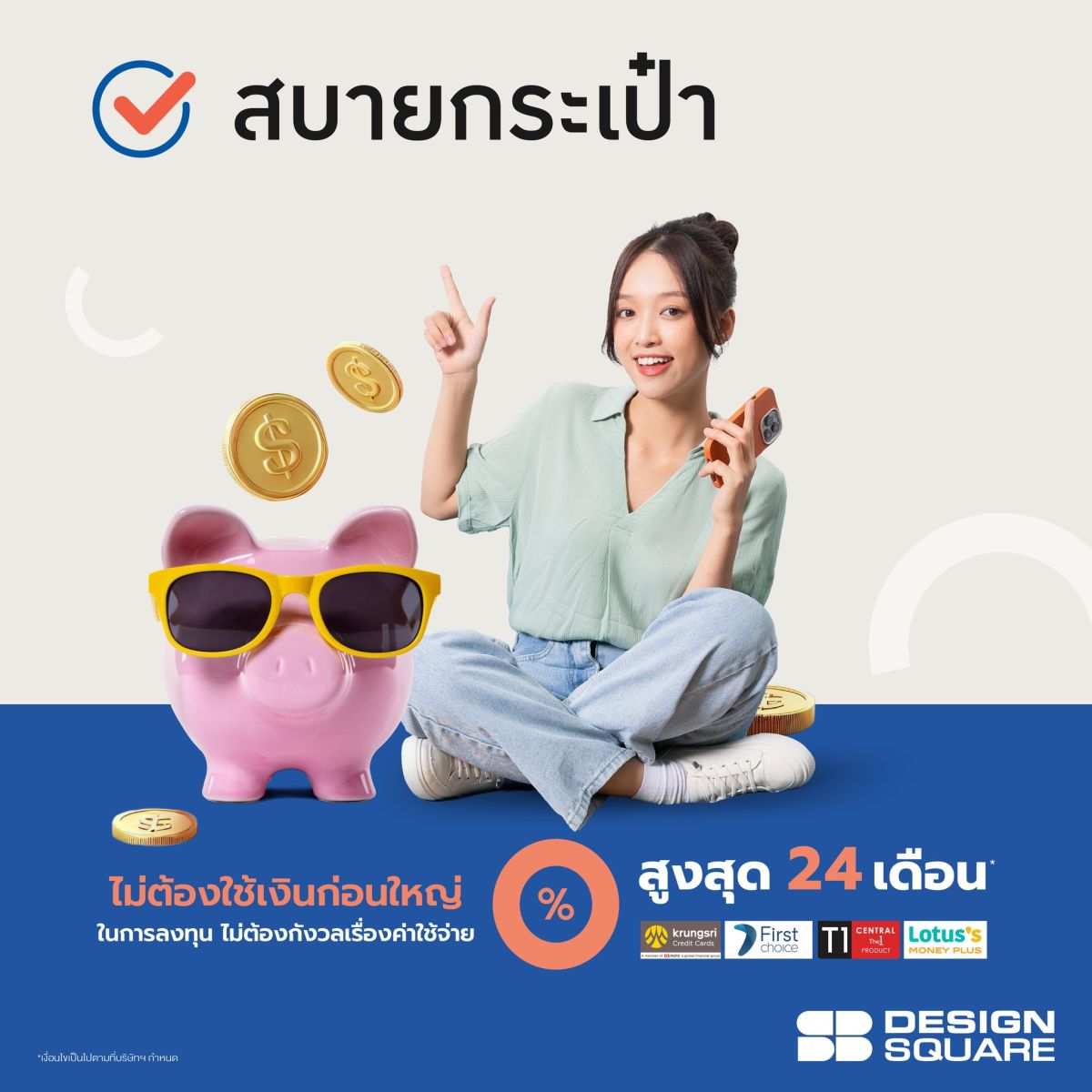 ความพิเศษของ Easy Fur Rent ไม่ได้มีเพียงแค่ความคุ้มค่า แต่ยังรวมถึงสิทธิพิเศษทางการเงินที่ทำให้การตกแต่งห้องกลายเป็นเรื่องง่าย โดย SB Design Square ได้ร่วมกับ บัตรเครดิตและสินเชื่อในกลุ่มกรุงศรีคอนซูมเมอร์ มอบข้อเสนอสุดพิเศษให้สมาชิกบัตรกรุงศรีเฟิร์สช้อยส์ทุกหน้าบัตร สามารถซื้อเฟอร์นิเจอร์จาก SB และผ่อนชำระ 0% ได้นานสูงสุดถึง 24 เดือน