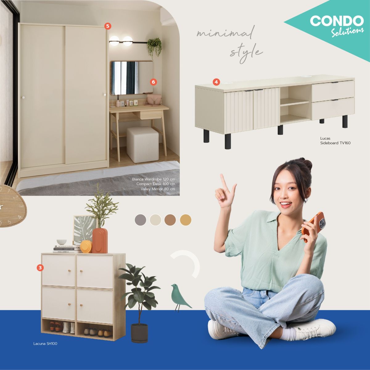 ทั้งหมดนี้สามารถเลือกได้ในแบบที่เหมาะกับบุคลิกของห้องและกลุ่มเป้าหมายผู้เช่าโดยเฉพาะ นอกจากแพ็กเกจที่ SB Design Square คัดสรรไว้ให้แล้ว ลูกค้ายังสามารถเลือกเฟอร์นิเจอร์แต่ละชิ้นเองได้ตามความต้องการ เพื่อให้สอดคล้องกับขนาดห้อง โทนสี หรือสไตล์เฉพาะตัวที่ต้องการนำเสนอ