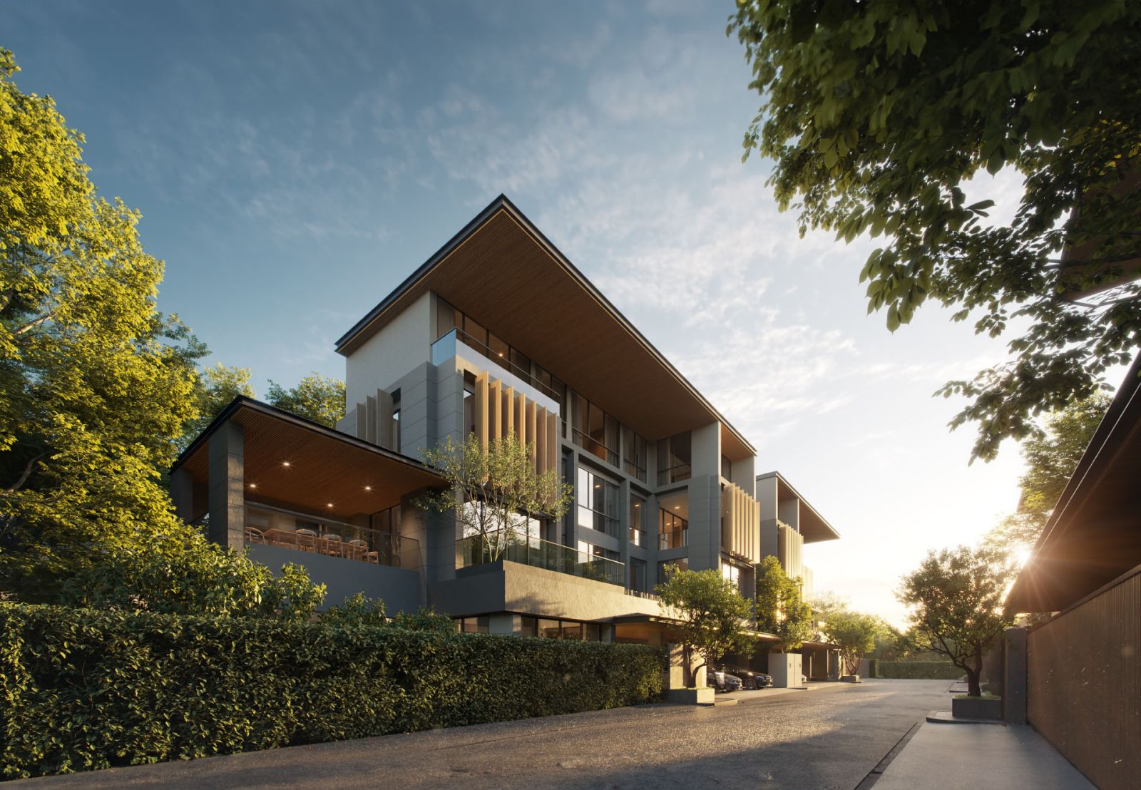 ในส่วนของตัวบ้านถูกดีไซน์ให้มีสมดุลระหว่างความเป็นส่วนตัว และการใช้ชีวิตร่วมกัน ด้วยการวางผังที่ยืดหยุ่น สำหรับพื้นที่ส่วนกลางออกแบบให้เกิดการยืมมุมมองจากบ้านข้างเคียง เพื่อสร้างความรู้สึกเชื่อมโยงและโปร่งสบายเหมือนรีสอร์ต โดยมีพื้นที่สีเขียวช่วยเติมเต็มคุณภาพชีวิต