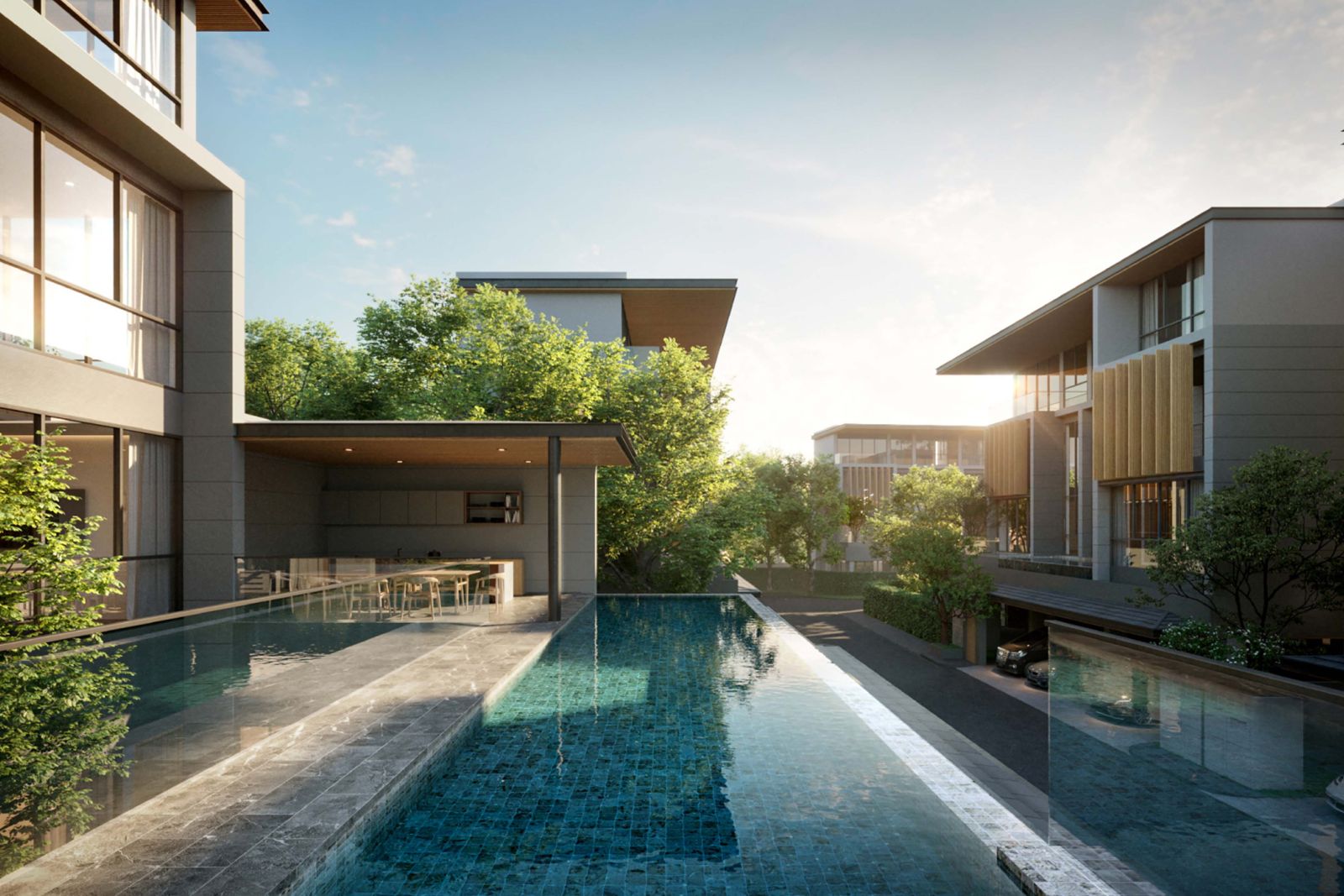 รายล้อมไปด้วย Lifestyle Malls, Specialty Cafés, Sport Clubs, และโรงพยาบาลชั้นนำ อีกทั้งยังมีโครงการรถไฟฟ้า MRT สายสีส้ม และ Monorail สายสีเทา ที่จะเปิดให้บริการภายในปี 2573 และในส่วนของสินค้า (Product) ที่เป็นบ้านเดี่ยวเพียง 9 หลัง มาพร้อมกับพื้นที่ใช้สอยขนาดใหญ่ เริ่มต้นที่ 733 ตารางเมตร และฟังก์ชันที่ยืดหยุ่น ให้ความเป็นส่วนตัวสูง
